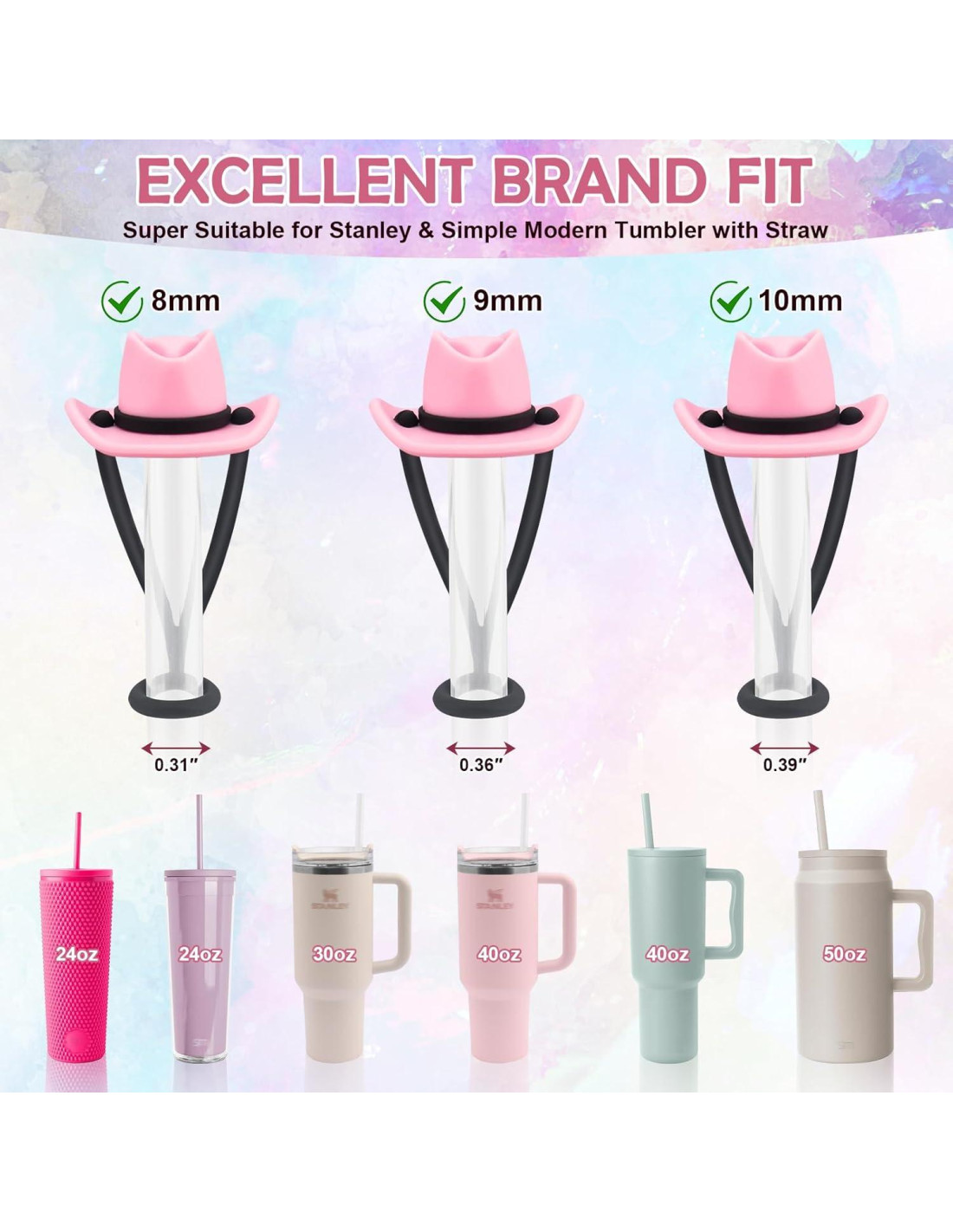 - Muy compatible con las Tazas Stanley de 30 y 40 oz con pajitas de 8~10mm (0.3~0.4 in) de diámetro.
