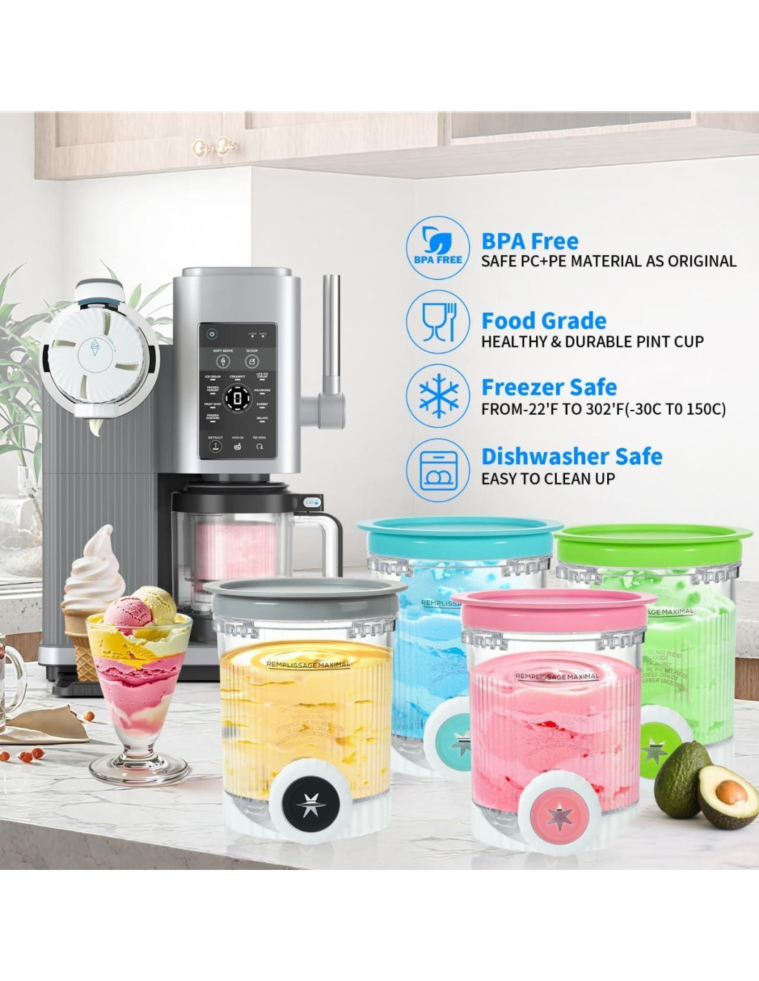 - Incluye empaque: Pints de helado creami GKAKITSP con tapas de 4 colores ofrecen opciones adicionales para personalizar tus propios postres congelados. Se transforman fácilmente en deliciosos y suaves postres en pocos minutos. Por favor nota: No sobrellenar y no exceder la línea de capacidad máxima.