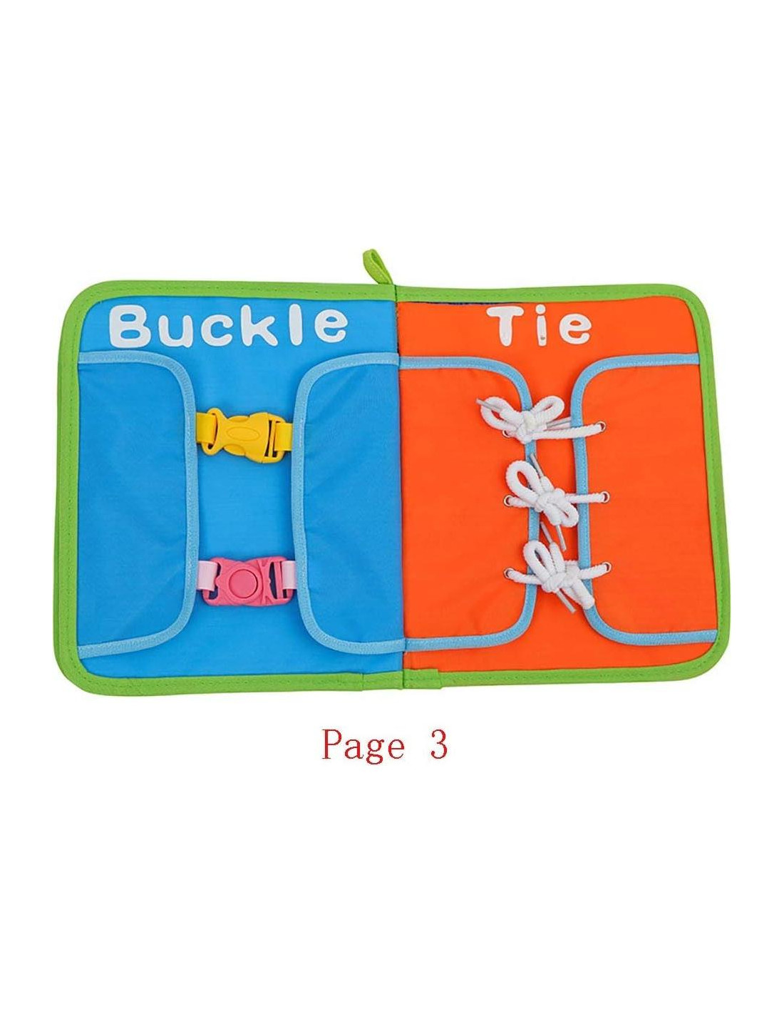 - CONVENIENCIA: Estilo libro con diseño de asa, ¡muy fácil de llevar! Producto de 4 páginas, 8 lados. Los productos incluyen: Cerrar, Botón, Hebilla, Broche, Atar y Enlazar seis tipos de ayudas didácticas de tablero de aprendizaje.