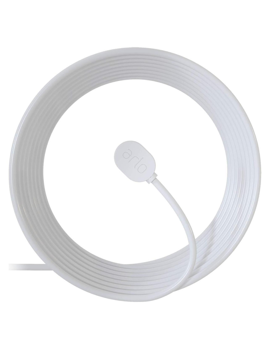 El cable de carga magnético exterior de Arlo mantiene tu cámara cargada en todo momento, tanto en interiores como en exteriores. Con un conector resistente a la intemperie, este cable de carga de 25 pies (7.62 metros) y adaptador de corriente se conecta fácilmente para ofrecer energía ininterrumpida a tu cámara.