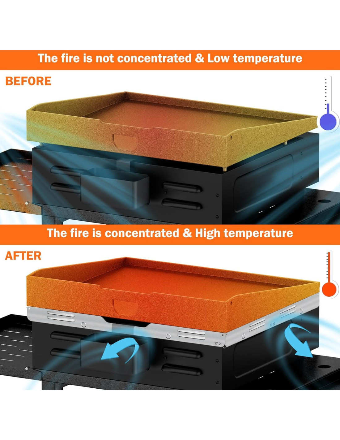 - [Bloquea Vientos y Mantiene Calor] Los rompe vientos magnéticos para Blackstone pueden proteger eficazmente contra el viento, concentrar la llama bajo el área de cocción, reducir la pérdida de calor y acelerar el tiempo de cocción. Además, el calor se controla eficazmente en el centro y no se dispersa hacia la mesa lateral o fuera de la estufa, asegurando la seguridad del cocinero. Ahorrar propano indirectamente también es un beneficio.