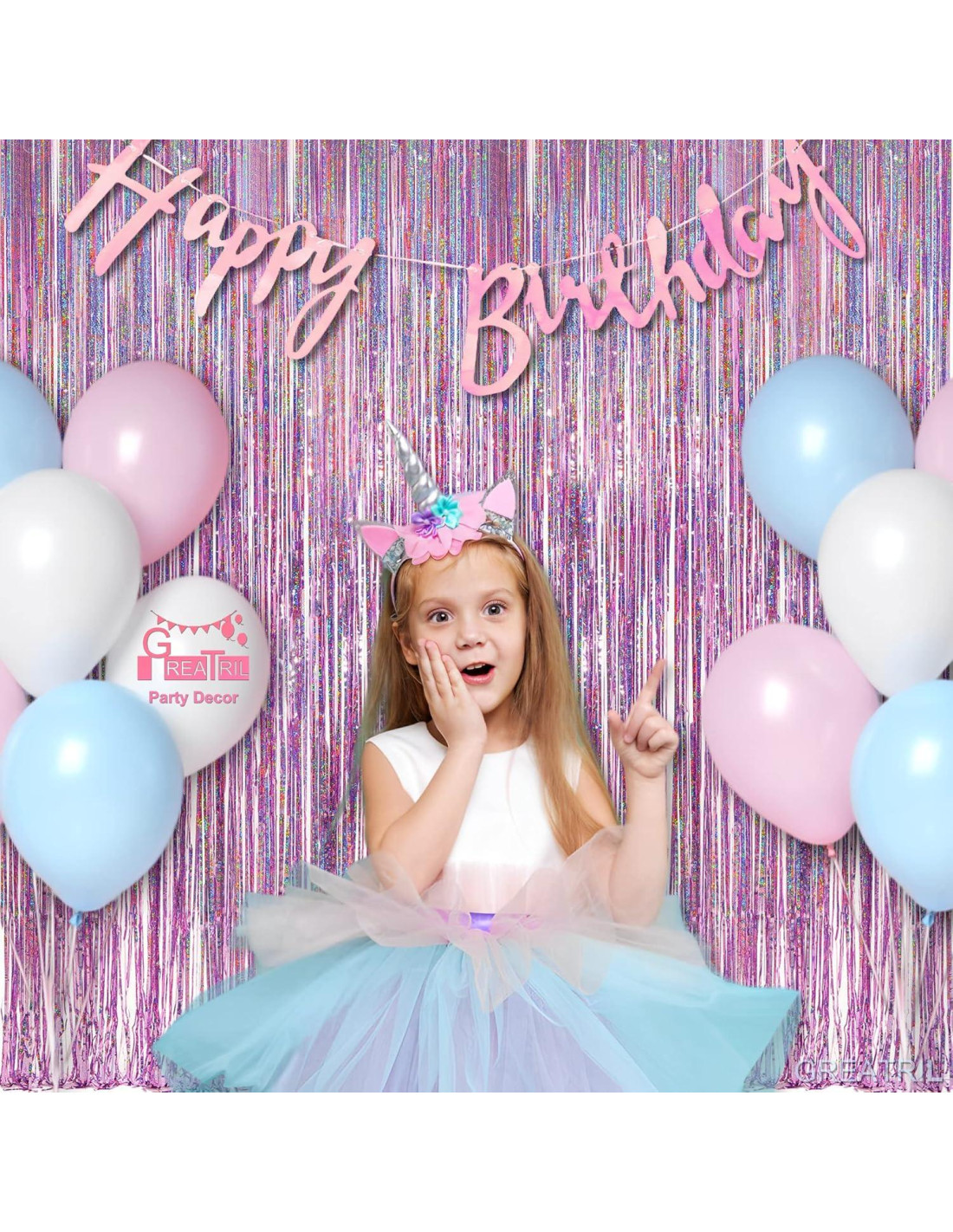 Cortina de lentejuelas rosa GREATRIL buena para todas las fiestas de tema rosa, como princesa/donut/unicornio/dulce.
