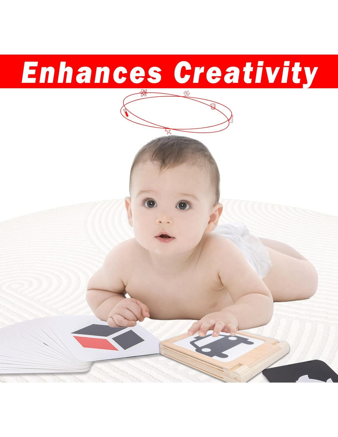 - Mejora la Creatividad y Habilidades Cognitivas Los patrones en blanco y negro de las tarjetas son simples y llamativos, lo que ayuda a estimular la imaginación y creatividad de los bebés. A medida que los bebés crecen y se desarrollan, pueden usar las tarjetas para explorar formas, patrones y texturas, ayudándoles a desarrollar sus habilidades cognitivas y creatividad.