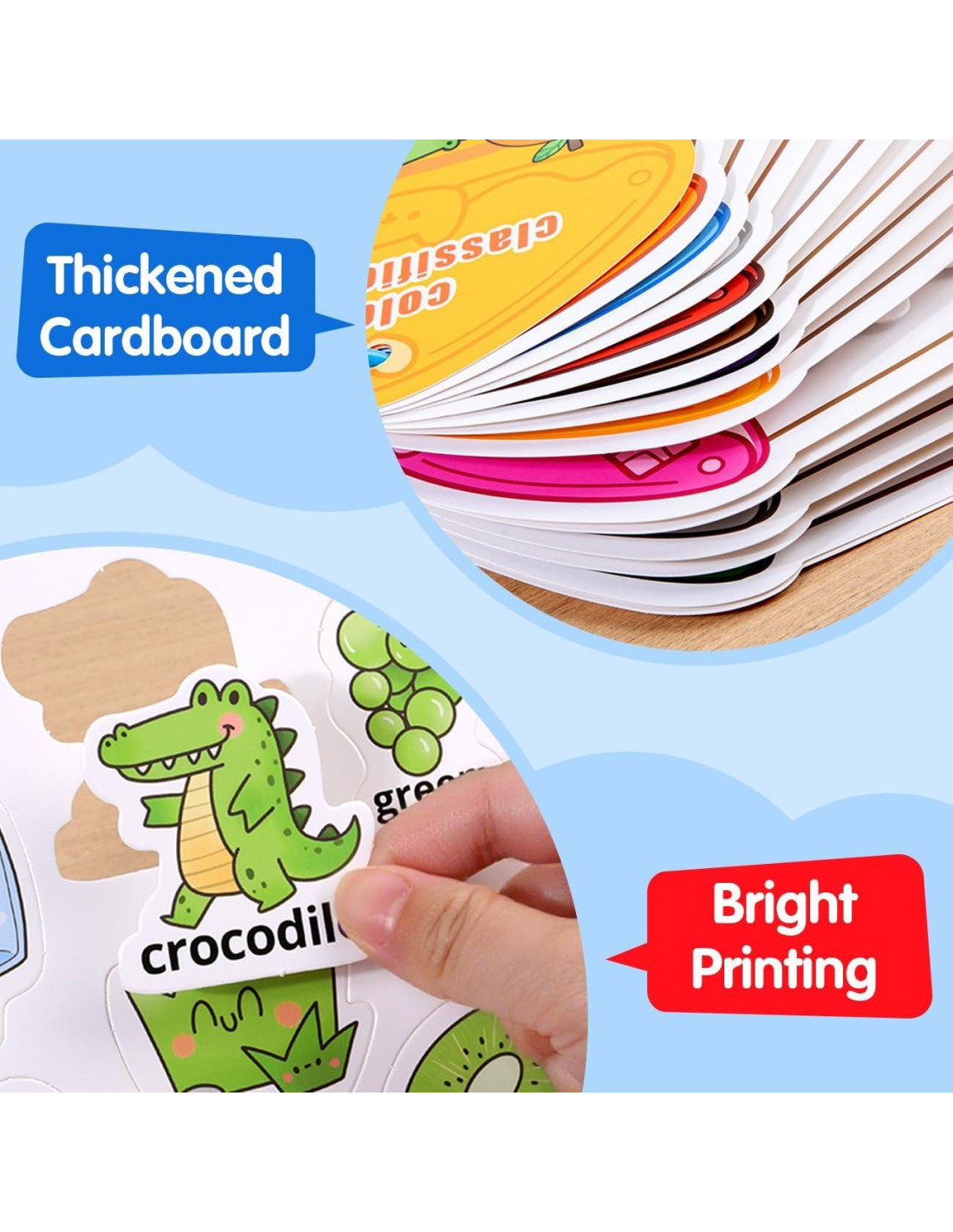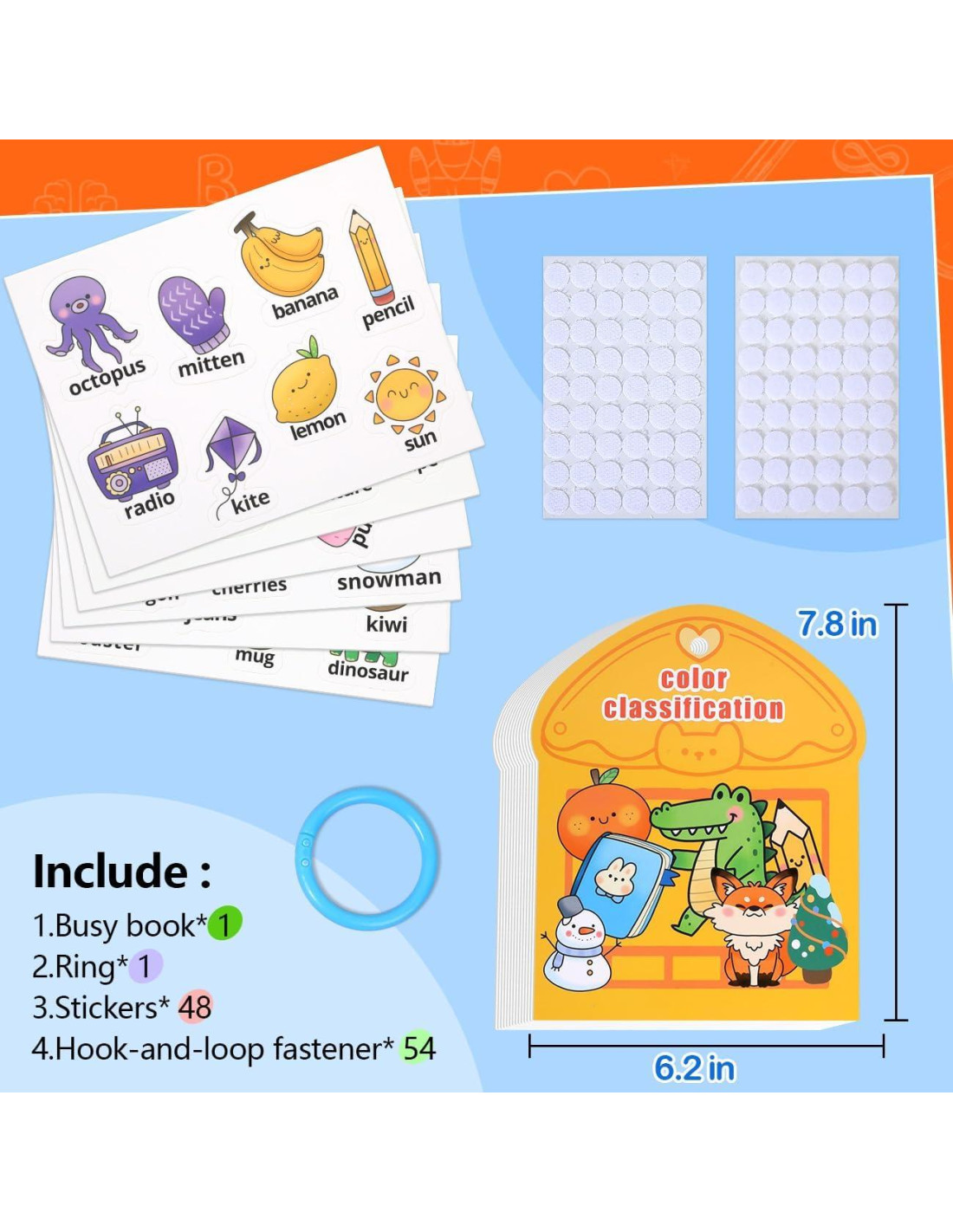 - Libro Ocupado de Colores para Emparejar: A tus niños les encantará dominar 12 colores con nuestro libro ocupado interactivo. Usarán el resistente cierre de gancho y bucle para emparejar más de 48 encantadoras pegatinas de dibujos animados. Cada pieza presenta una imagen clara con su palabra, fomentando naturalmente el desarrollo del vocabulario y las habilidades de pre-lectura. Esta herramienta de aprendizaje todo en uno convierte la diversión en una experiencia educativa fundamental.