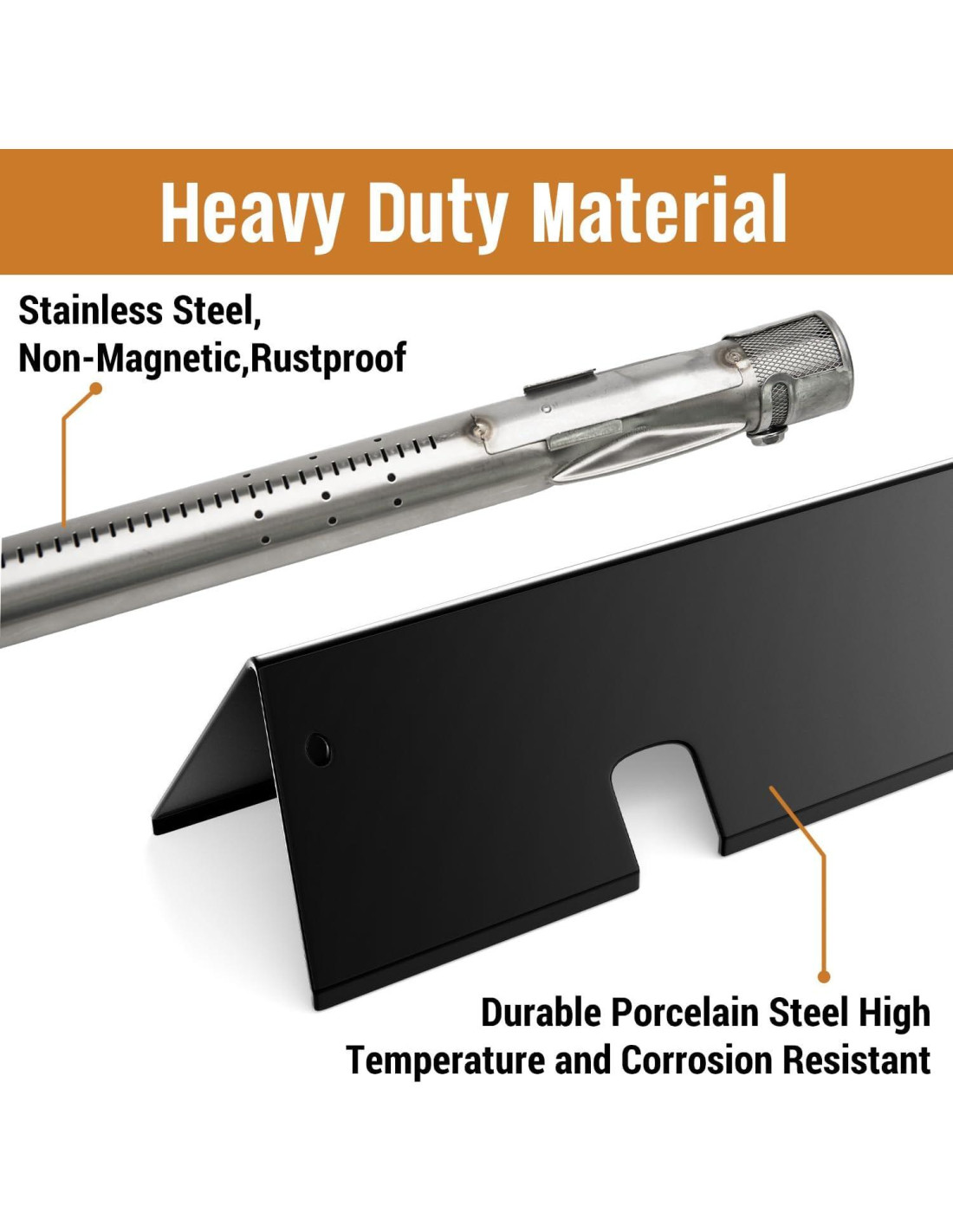 Rushare ofrece soluciones para instalaciones de barbacoa para parrillas Weber que te ayudan a disfrutar de reuniones cálidas. Nuestro equipo profesional e innovador se esfuerza especialmente por proporcionar productos de calidad. Estamos comprometidos a mejorar la experiencia de BBQ al aire libre para cada cliente. Compatible con Weber Spirit II 200 Series (con Controlador Frontal), incluyendo Spirit II E-210, S-210, E-220. Número de Parte Original: 7635,69785. Paquete: Incluye: 3 x Barras Flavorizer + Quemadores de Parrilla. Material de la Barra Flavorizer: Acero Porcelanizado. Material del Quemador: Acero Inoxidable. Acero porcelanizado resistente a la corrosión para una durabilidad prolongada. El diseño de muesca mejorado mejora la ventilación, permite una observación más fácil del estado de combustión. Las barras Flavorizer están anguladas justo para atrapar los jugos que humean y chisporrotean, añadiendo ese sabor ahumado irresistible que todos conocemos y amamos a tu comida.