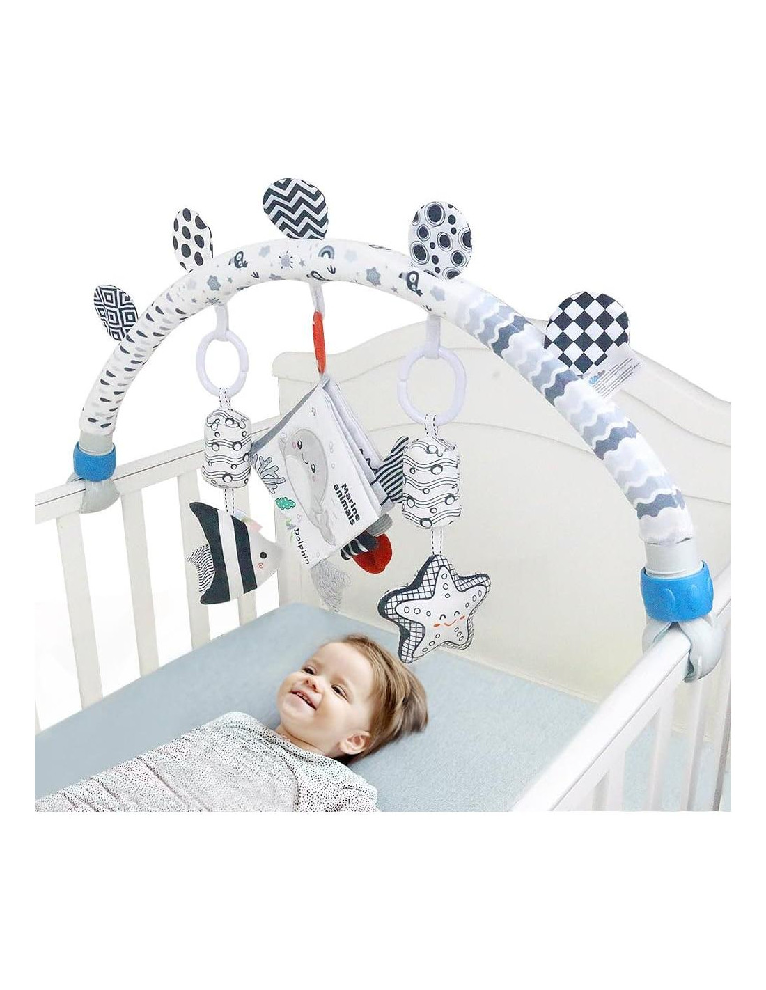 - Juguetes Colgantes Interactivos - Incluye un pez y una estrella de mar de peluche con características de sonido al presionar, un suave carillón que suena al ser agitado, y un innovador libro de juguetes desmontable con 10 patrones diferentes para mayor diversión.