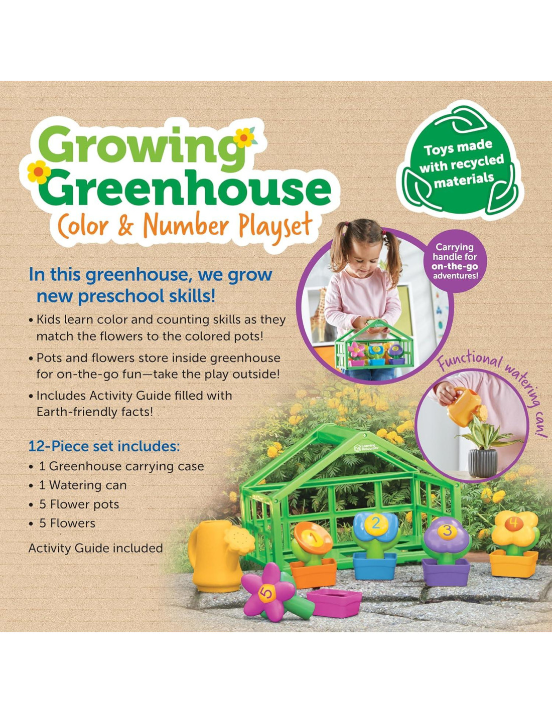¡En este invernadero, cultivamos nuevas habilidades preescolares! Los niños aprenden habilidades de color y conteo mientras clasifican, emparejan y cuentan las flores y sus macetas en el Juego de Color y Número del Invernadero en Crecimiento, uno de los juguetes de aprendizaje preescolar de Learning Resources. Este juguete educativo fresco del jardín ofrece a los niños numerosas formas de aprender y crecer: contar los pétalos de la flor o los números en sus centros, emparejarlos por color con la maceta correspondiente, o tomar la regadera para una sesión de jardinería imaginativa. Además, ¡la regadera de este juguete para niños pequeños realmente funciona! Las macetas y flores de este juguete de aprendizaje preescolar se almacenan dentro del invernadero para diversión sobre la marcha: ¡toma el asa del tamaño de un niño y lleva el juego afuera! Lo mejor de todo es que cada pieza del Juego de Color y Número del Invernadero en Crecimiento está hecha con un 70% de plástico reciclado: ¡es una forma más sostenible de jugar! El Juego de Color y Número del Invernadero en Crecimiento también incluye una Guía de Actividades llena de datos sobre sostenibilidad amigables para los niños y actividades de aprendizaje preescolar que ayudan a los niños a descubrir nuevas formas de mantener las cosas verdes. Cuando compras productos sostenibles de Learning Resources, estás comprando juguetes y herramientas educativas que resisten la prueba del tiempo. Nuestros juguetes duraderos y atemporales están hechos para generaciones de diversión en el aprendizaje en hogares y aulas. Desde reducir nuestra huella de empaque hasta introducir productos hechos de plástico reciclado, hemos diseñado estos juguetes para hacer del mundo de tus hijos un lugar más brillante y saludable para aprender, jugar y crecer. Somos Learning Resources, y aprender es donde jugamos. Con casi 40 años de experiencia, la misión de nuestra empresa familiar se basa en ofrecer a los niños juguetes educativos para una inspiración infinita para tener éxito en la escuela y más allá. Desde ABC y 123 hasta habilidades motoras finas y STEM, nuestros juguetes educativos galardonados ayudan a los niños a descubrir innumerables formas de desarrollar un amor por el aprendizaje de por vida mientras construyen nuevas habilidades. En 2022, Learning Resources amplió esta dedicación al aprendizaje y enriquecimiento con Brightkins, una línea de herramientas y juguetes interactivos de entrenamiento para mascotas que ayudan a las familias a descubrir formas brillantes para que las mascotas jueguen. Aprende más sobre cómo convertimos un amor infantil por el juego en un amor de por vida por el aprendizaje con una visita a nuestra tienda de marca hoy.