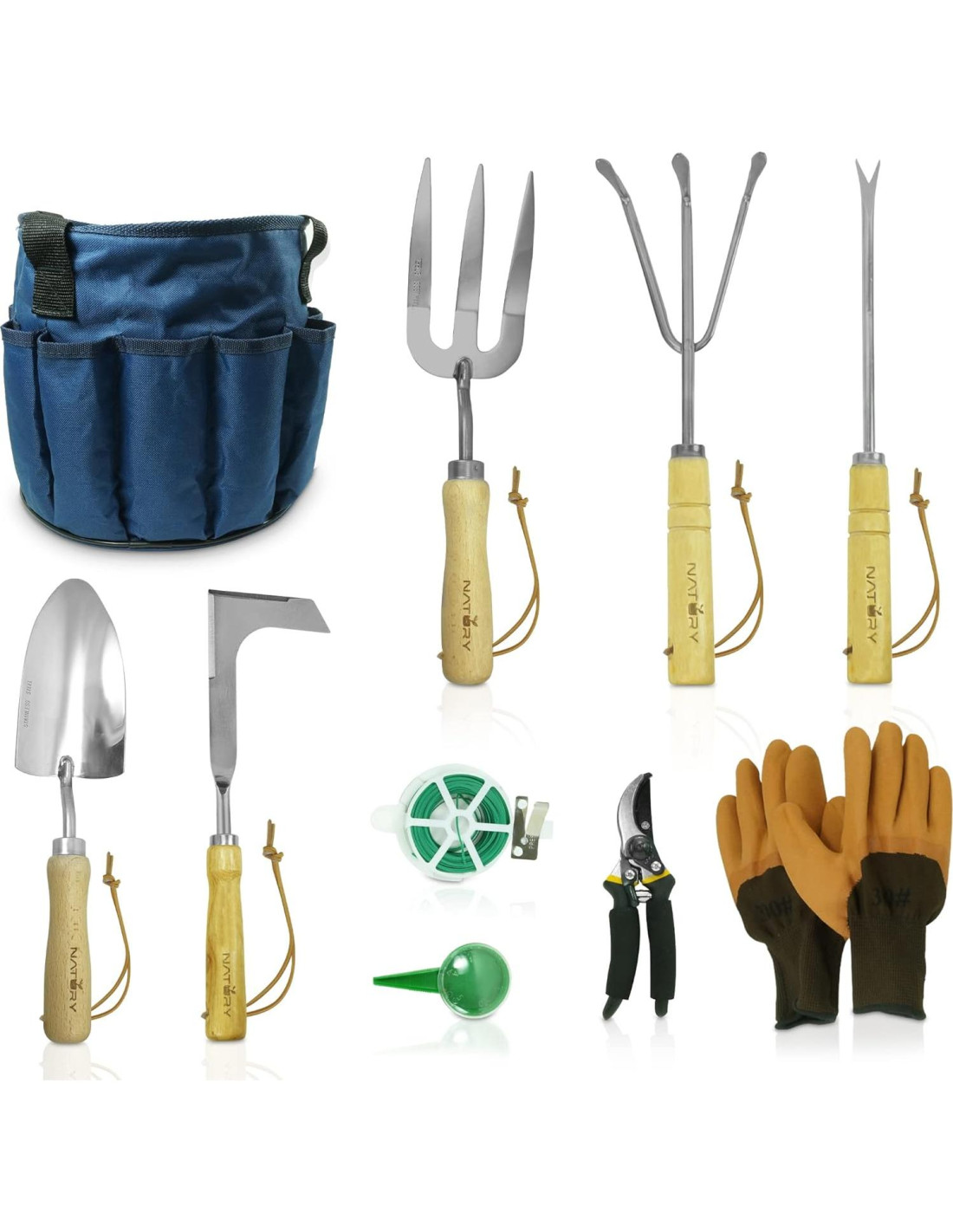 - UNA NECESIDAD PARA JARDINEROS APASIONADOS: Ya sea que te apasione la jardinería o que encuentres la jardinería un pasatiempo agradable y relajante, el juego de herramientas de jardín Natury es lo que necesitas para cuidar adecuadamente tus plantas mientras te relajas rodeado de tus hermosas flores y cultivos.