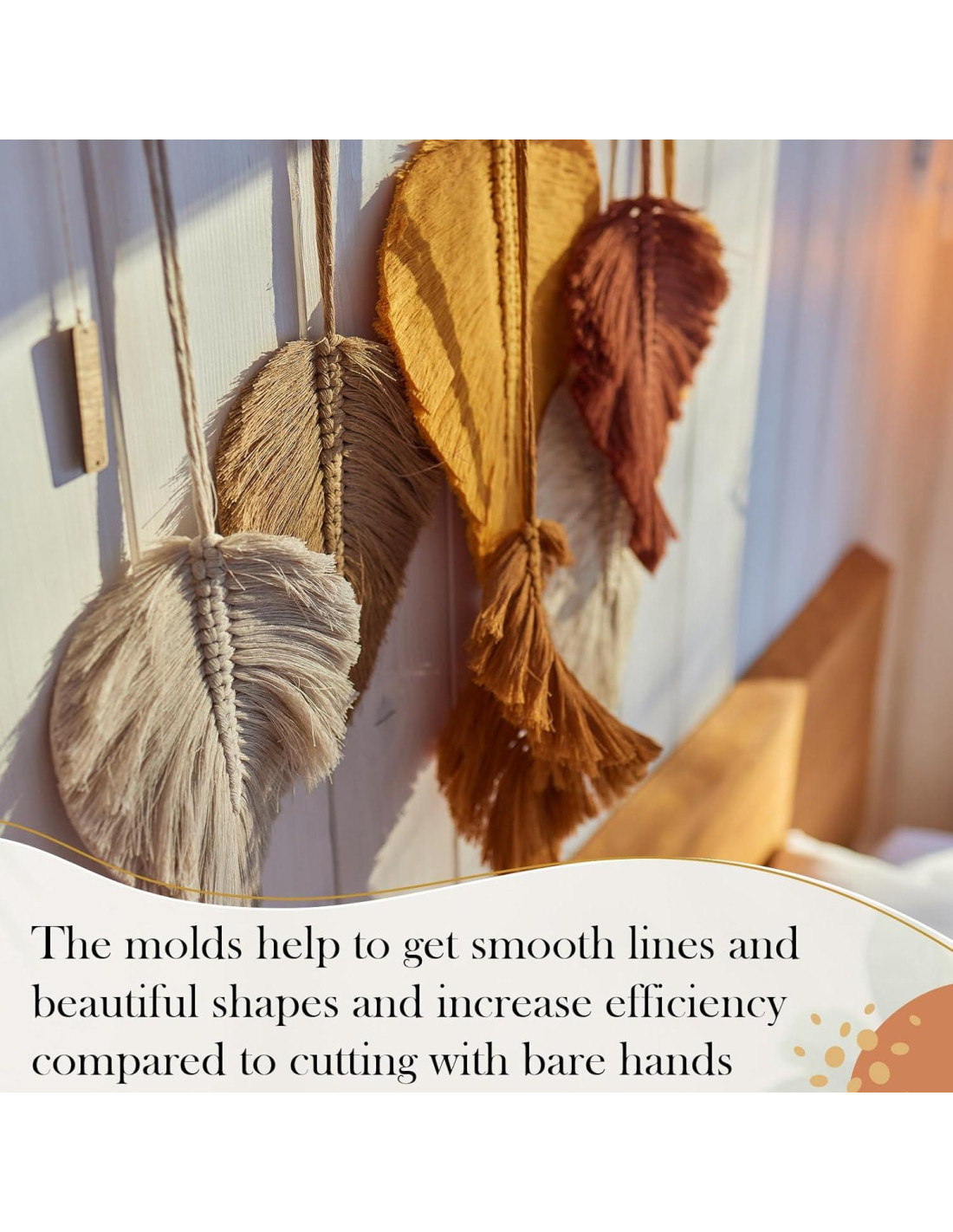 - 9 Juegos de Plantillas de Madera: nuestros 9 juegos de plantillas de plumas de macramé, 3 formas diferentes, incluyendo longitudes de hoja larga de 30 cm (11.81 pulgadas), 20 cm (7.87 pulgadas) y 12 cm (4.72 pulgadas); Longitudes de hoja corta de 25 cm (9.84 pulgadas), 19 cm (7.48 pulgadas) y 13.5 cm (5.31 pulgadas); Y diámetros de estilo redondo de 25 cm (9.84 pulgadas), 16 cm (6.3 pulgadas) y 12 cm (4.72 pulgadas); Comparado con el corte a mano alzada, el molde ayuda a obtener líneas suaves y formas hermosas, y ahorra tu tiempo y energía