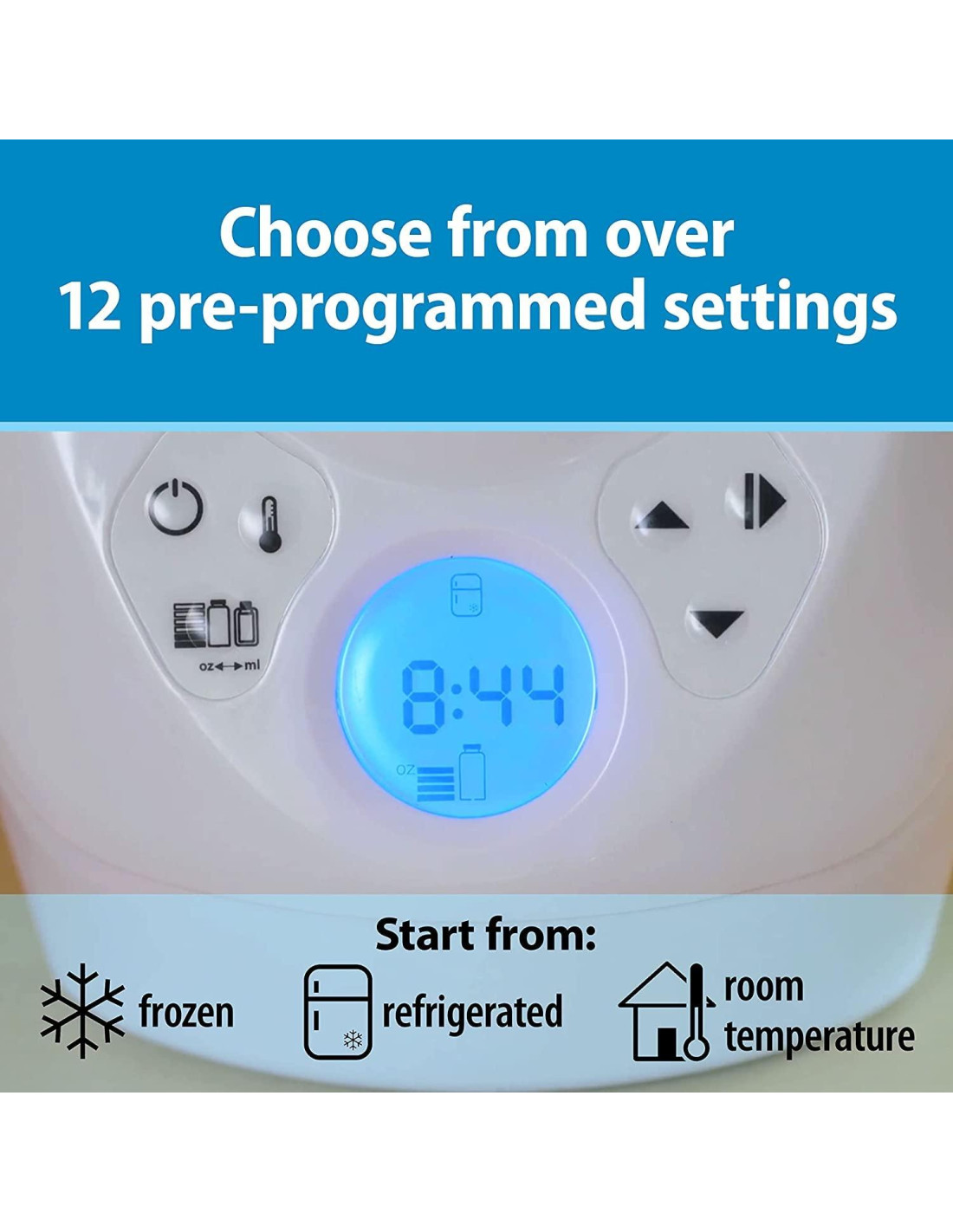 - CALENTADOR DE LECHE MATERNA Y BOTELLAS. Baño de agua suave calienta de manera segura y rápida la leche materna a temperatura corporal. CONFIGURACIONES PERSONALIZABLES. Con más de 12 configuraciones preprogramadas para elegir, puedes personalizar el ciclo de calentamiento para comenzar desde congelado, refrigerado o temperatura ambiente.