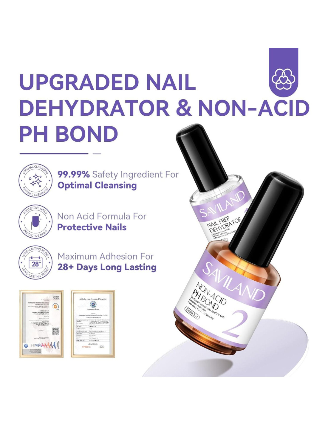 - AMPLIA APLICACIÓN: El deshidratador de uñas Saviland y el adhesivo sin ácido son adecuados para uñas naturales, uñas de gel UV, uñas postizas, uñas acrílicas. Compatible con todos los sistemas de gel para uñas, polvo acrílico y líquido.