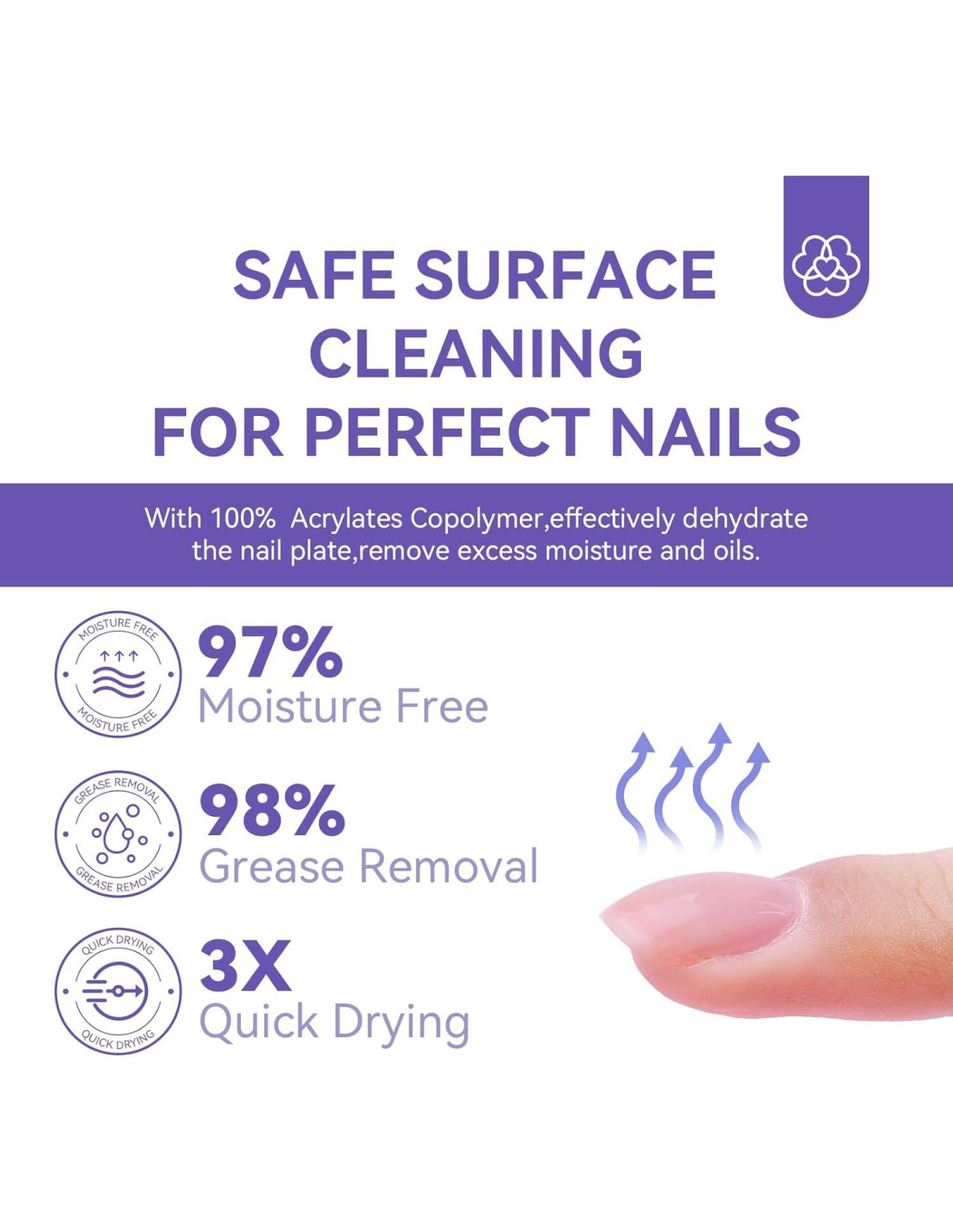- NO MÁS LEVANTAMIENTO: El deshidratador de uñas se utiliza para eliminar el aceite y secar toda la cutícula en el área de la cama de la uña. Y el adhesivo sin ácido es menos corrosivo, sin ácido y funciona como cinta adhesiva de doble cara para unir la uña y el esmalte de uñas en gel. Combinando estos dos productos, se puede obtener una fuerte protección para prevenir el levantamiento y lograr una manicura duradera por más de 3 semanas.