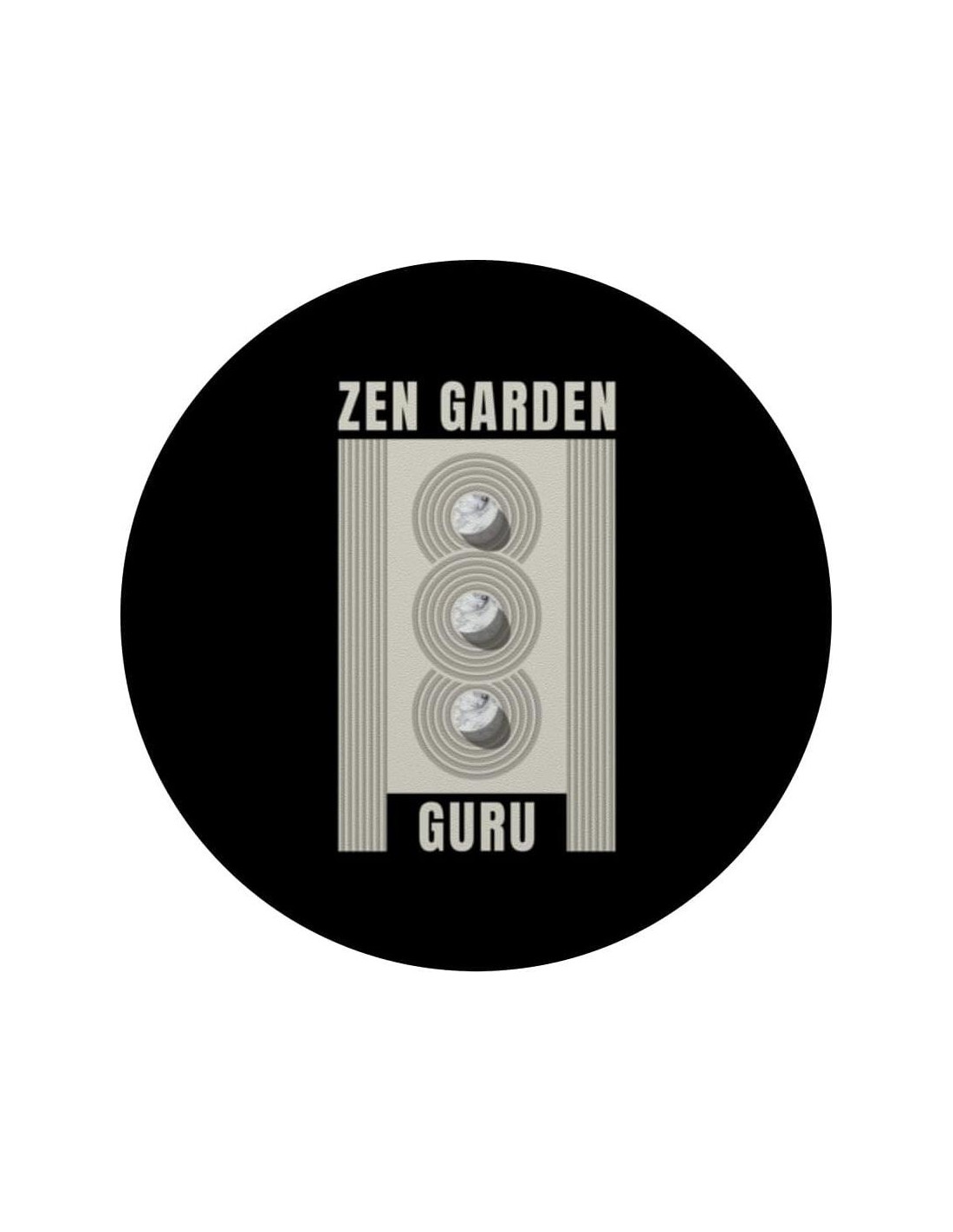 - Un diseño pacífico que muestra un jardín zen minimalista con piedras y patrones de arena rastrillada, acompañado del texto en negrita 'Guru del Jardín Zen.'