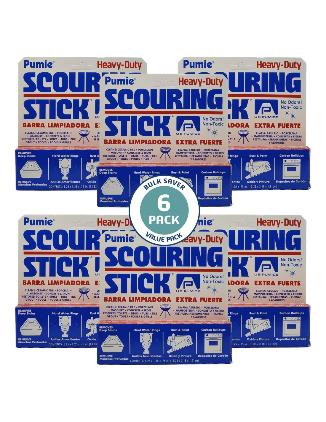 - Paquete de 6 - PUMIE SCOURING STICK: El poder de Pumie conquista cuando los productos químicos más fuertes fallan. Usa el poder abrasivo de Pumie para eliminar óxido, grasa, depósitos minerales, sarro, alimentos pegados y manchas. Limpia bañeras y duchas, elimina anillos antiestéticos de inodoro.