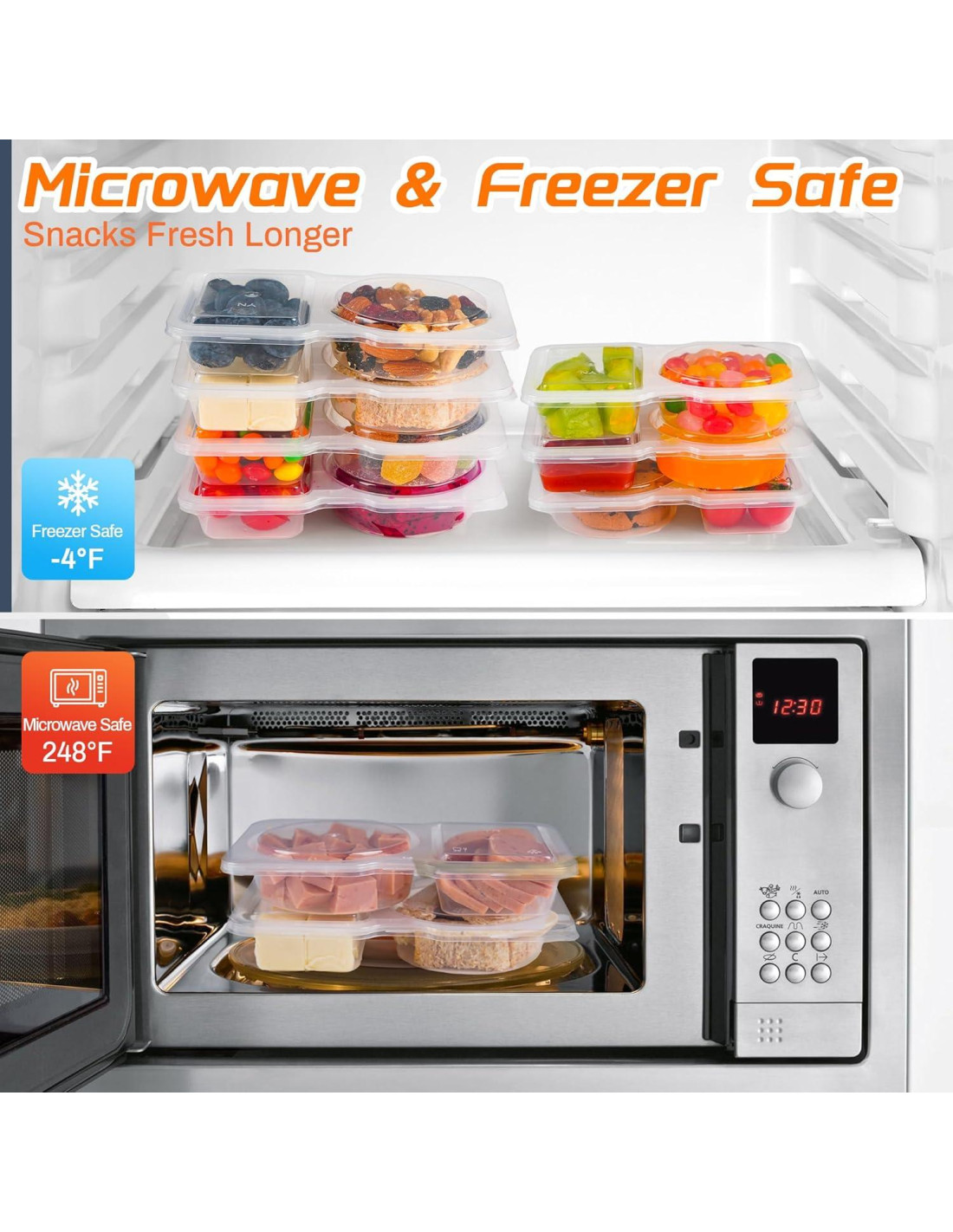 - MATERIAL APTO PARA ALIMENTOS: Los pequeños recipientes con tapas están hechos de plástico apto para alimentos, diseño reforzado, robusto y duradero, libre de BPA y sin olor. Apto para microondas y congelador (rango de temperatura: +120C/-20C).