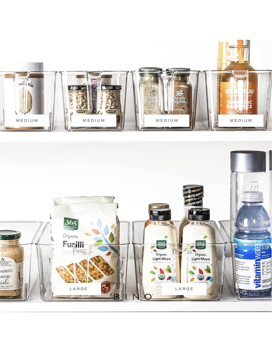 - Contenedores de Almacenamiento que Ahorran Espacio: El paquete de 4 contenedores de plástico medianos BINO con mangos pueden ayudarte a maximizar tu espacio de almacenamiento. Estos organizadores de uso múltiple son lo suficientemente versátiles como para encajar ordenadamente dentro de tu refrigerador, estantes de despensa, gabinetes y más. Estos contenedores de almacenamiento también se pueden apilar, por lo que solo ocupan un poco de espacio cuando no se usan. Haz que tus artículos sean más accesibles mientras mantienes tu refrigerador y despensa organizados.