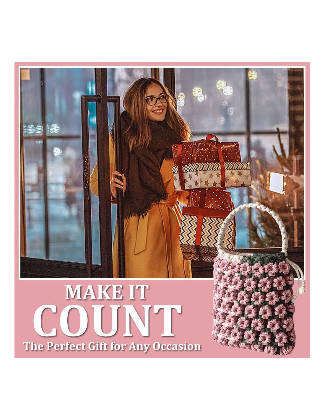 - Regalos Únicos: nuestro kit de bolsa de macramé DIY boho sería un gran regalo para mujeres y niñas, y también se pueden usar para crear regalos completamente nuevos desde cero. La bolsa terminada es cómoda de llevar, regala el kit de DIY de macramé o el artículo terminado a tu familia, colegas y amigos como regalos, sabrás cuánto les encantará el DIY.