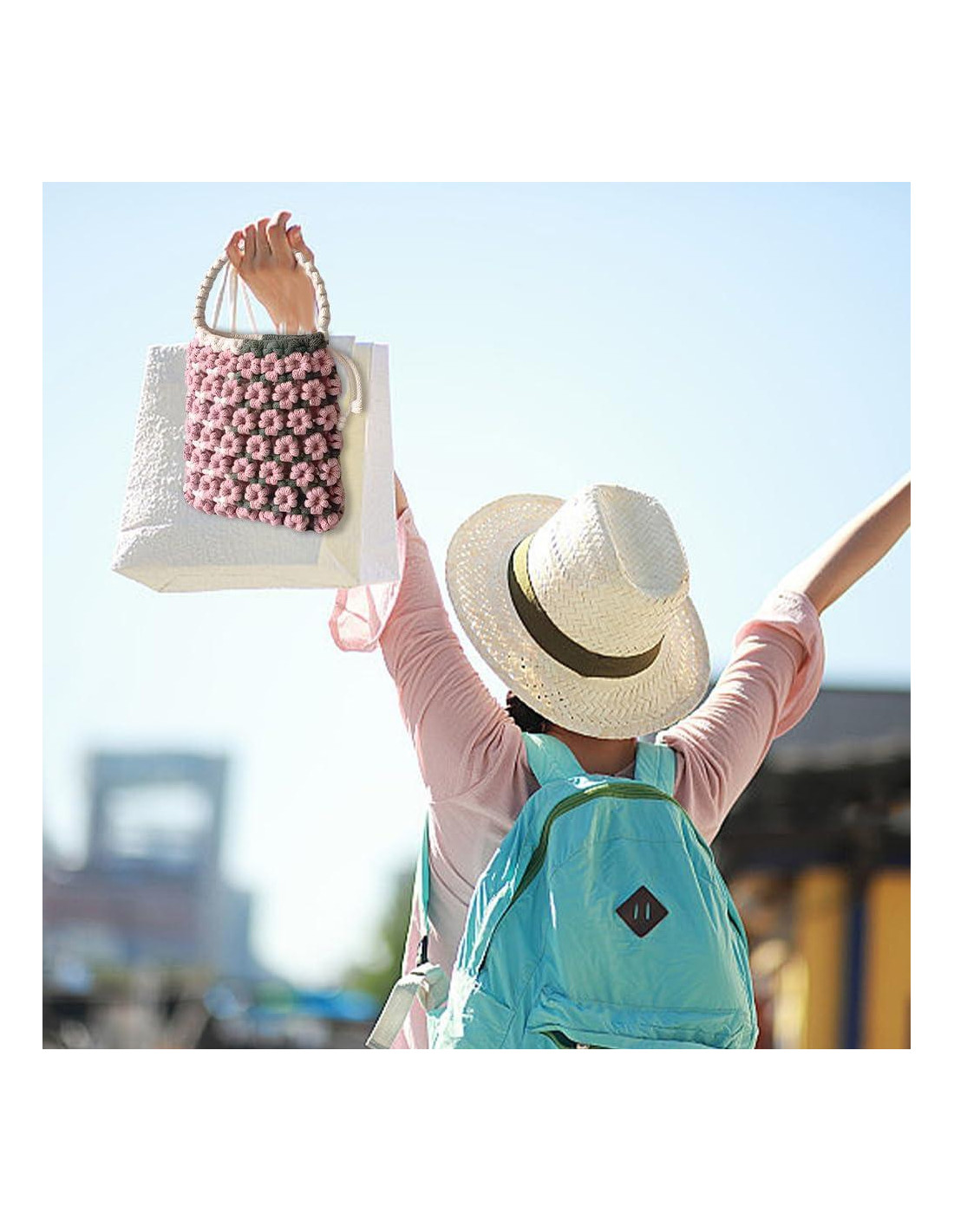 - Material Duradero y Ligero: El Kit de Bolsa de Macramé Floral Rosa está hecho de cuerda de algodón de alta calidad de color natural, lo que lo hace duradero y cómodo de sostener.