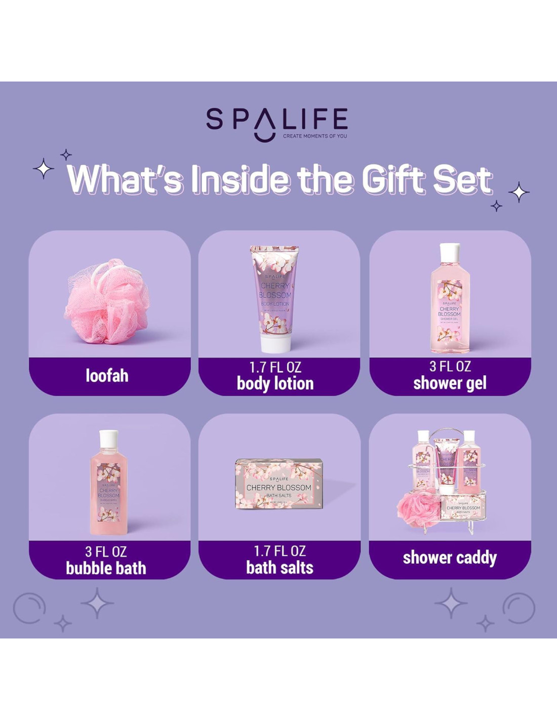 - Juego de regalo de baño versátil con caddy: El Juego de Regalo SpaLife Flores de Cerezo es el regalo perfecto para el Día de la Madre, cumpleaños, aniversarios, o simplemente como un gesto considerado. Con un encantador mini caddy, este set añade un toque especial a cualquier momento de regalo, convirtiéndolo en una manera atemporal de mostrar a mamá que es amada.