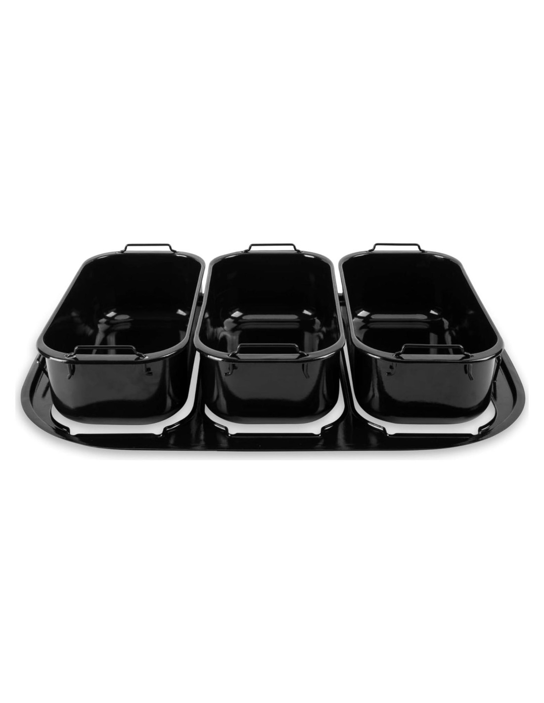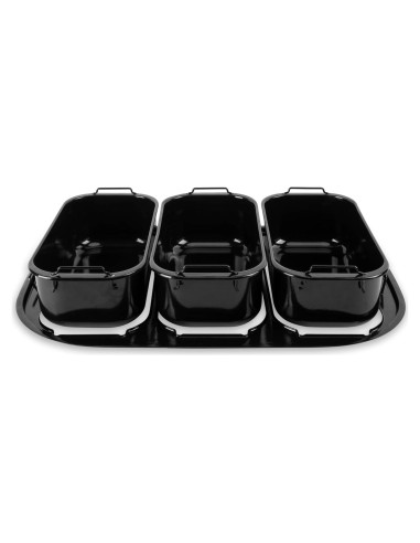 - ESMALTE DURADERO: El marco superior de buffet y las bandejas de servicio de comida para fiestas a juego están recubiertos con esmalte fácil de limpiar y resistente a rayones, ¡igual que tu Horno Asador AROMA!