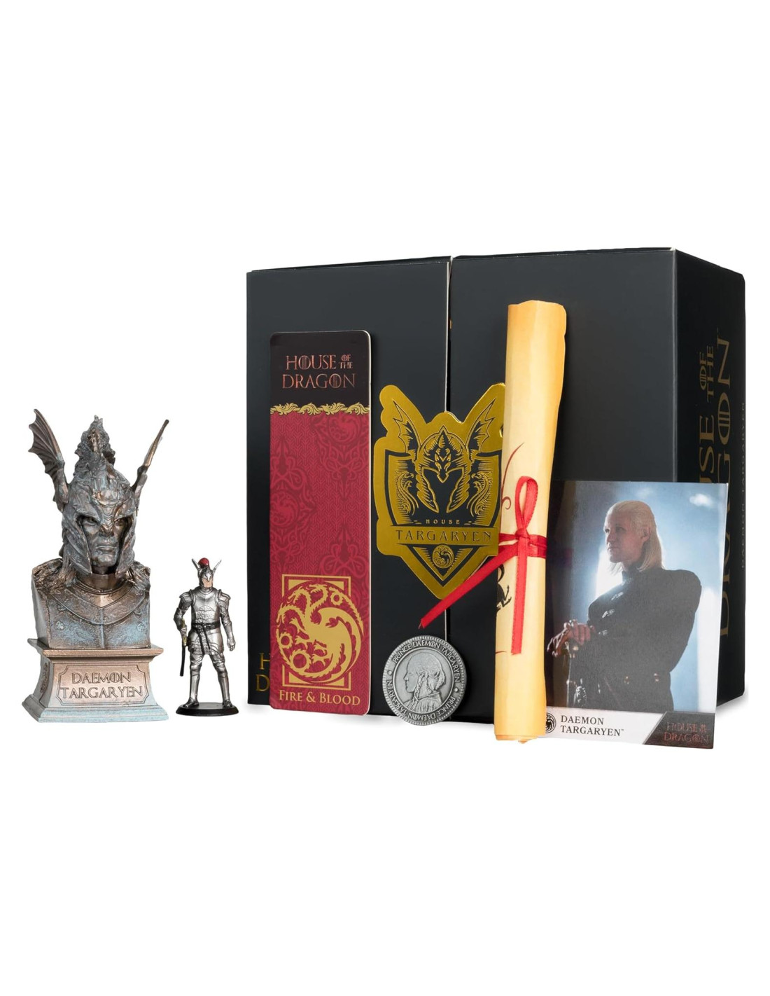 - Incluye figura mini de 2 pulgadas (5.08 cm), busto de personaje de 4.5 pulgadas (11.43 cm), moneda, árbol genealógico de la casa, tarjeta de coleccionista con certificado de autenticidad y marcador con el emblema de la casa