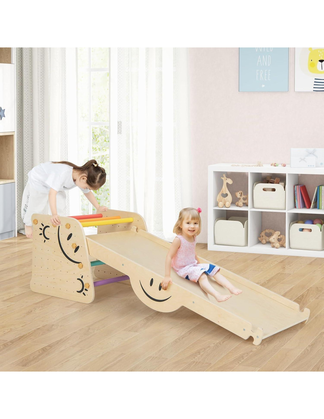 - [Regalo Divertido y Educativo para Niños] : Estos juguetes de escalada de madera para niños pequeños brindarán a los niños pequeños y preescolares una oportunidad importante para desarrollar sus habilidades motoras, capacidad de equilibrio, habilidad de escalada y coordinación mano-pie. Cumpliendo con la certificación ASTM y CPSIA, el conjunto de escalador con rampa es el mejor regalo para niños de 3 años o más.