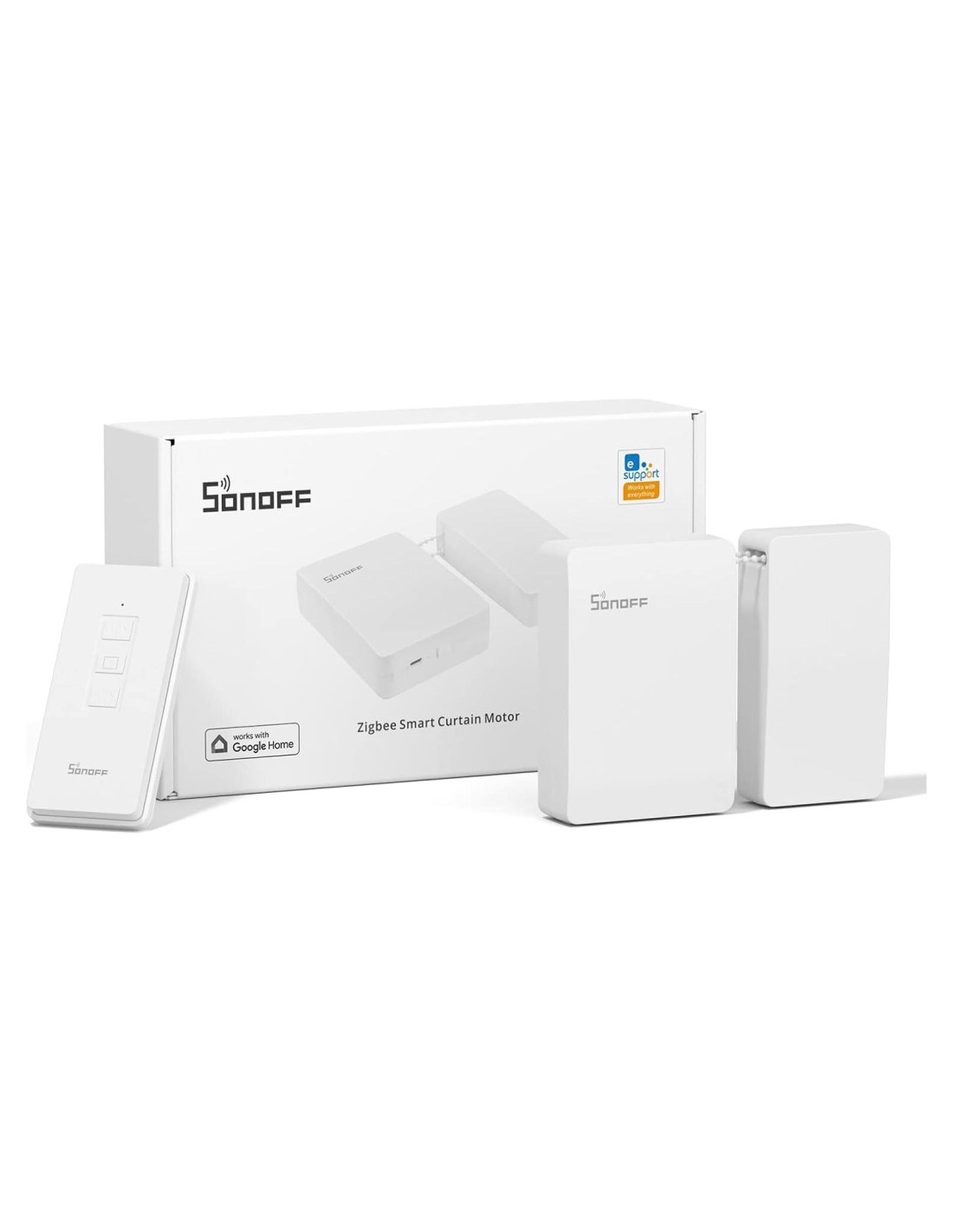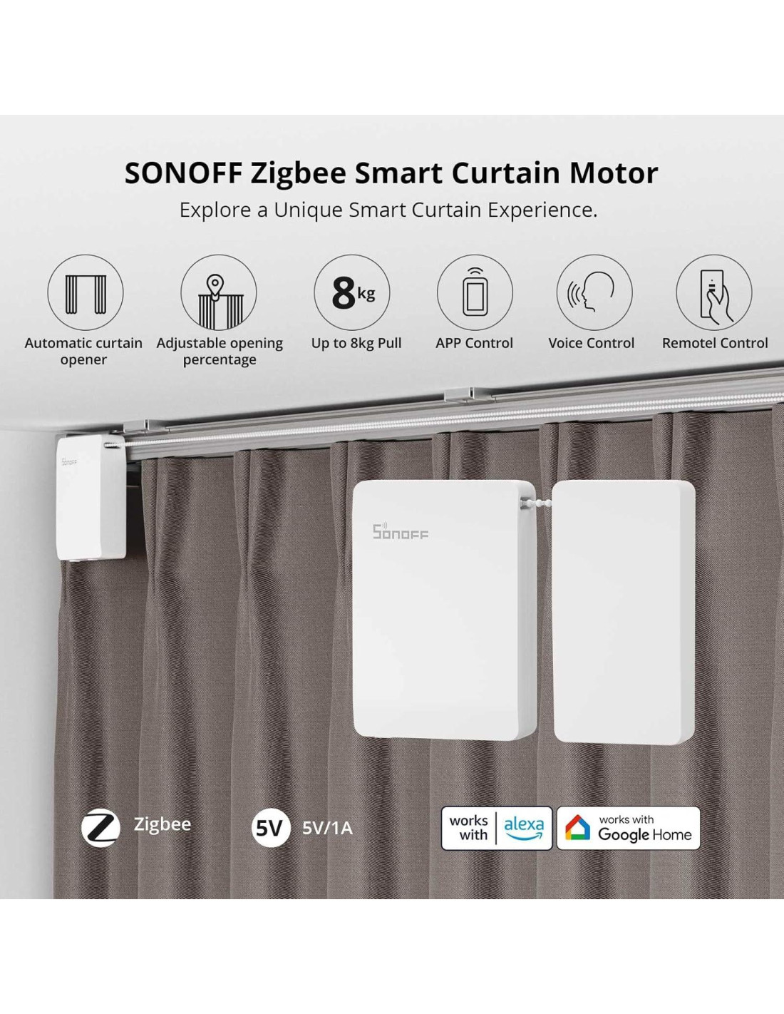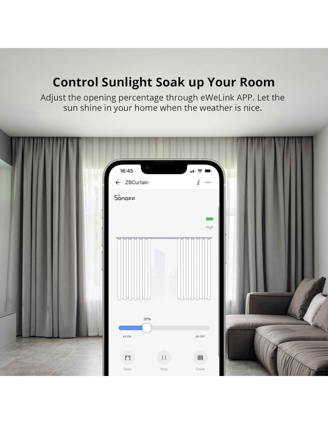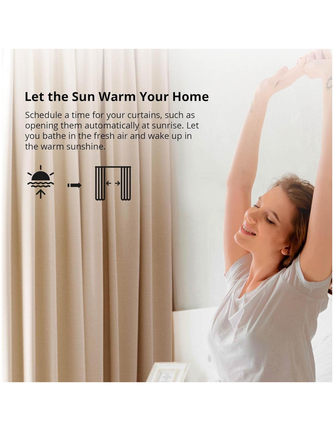 - Múltiples Opciones de Control: Puedes usar la App eWeLink para controlar tus cortinas, programar un tiempo, establecer escenas inteligentes en la APP para interactuar tus cortinas con otros dispositivos inteligentes, o usar control remoto (un control remoto para controlar múltiples motores de cortina o múltiples controles remotos para controlar un motor de cortina), el control por voz también es compatible.