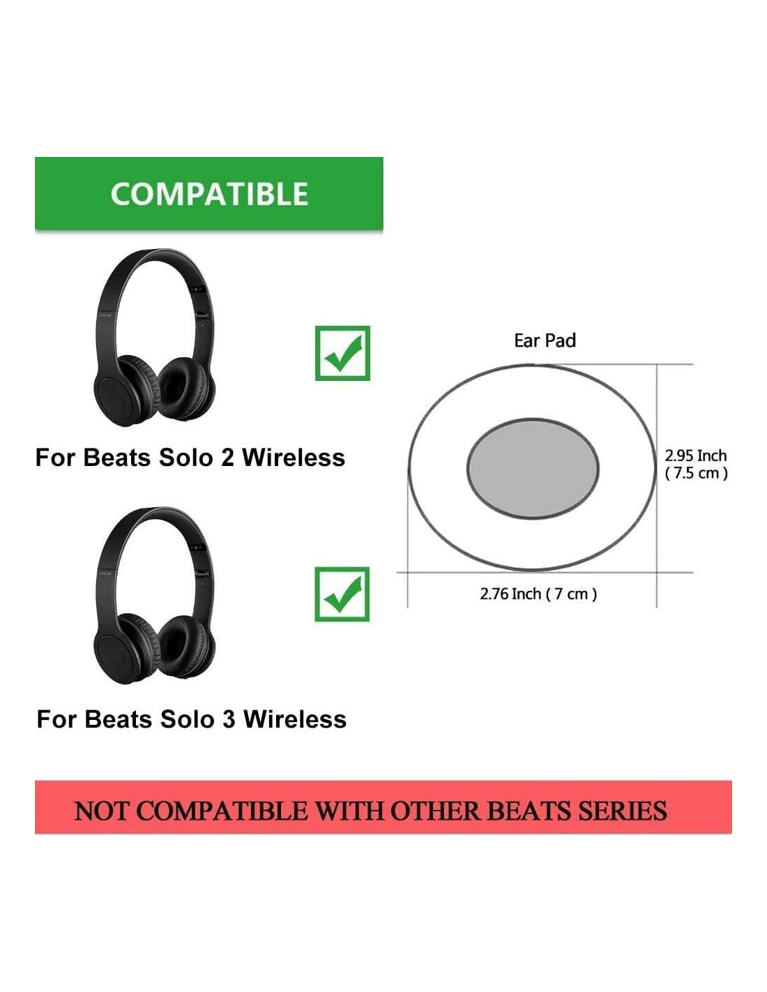 - Las almohadillas de reemplazo son compatibles con los auriculares Beats Solo 2.0 / 3.0 inalámbricos.