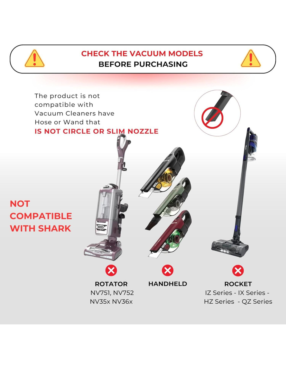- Amplia compatibilidad [Por favor verifica los modelos de tu aspiradora antes de comprar] Kit de accesorios de aspiradora compatible con aspiradora Shark Navigator, incluyendo modelos NV350, NV352, NV355, NV356E, NV357, NV360, serie UV440, Shark Rocket HV322, HV300, HV301, HV371, Rotator NV501, serie NV500, NV150, NV151, UV900, LA320, LA455 (Otros modelos de Shark NO son compatibles). También es compatible con pequeñas aspiradoras de taller que usan 1 1/4'' (32mm) 1.25 pulgadas.