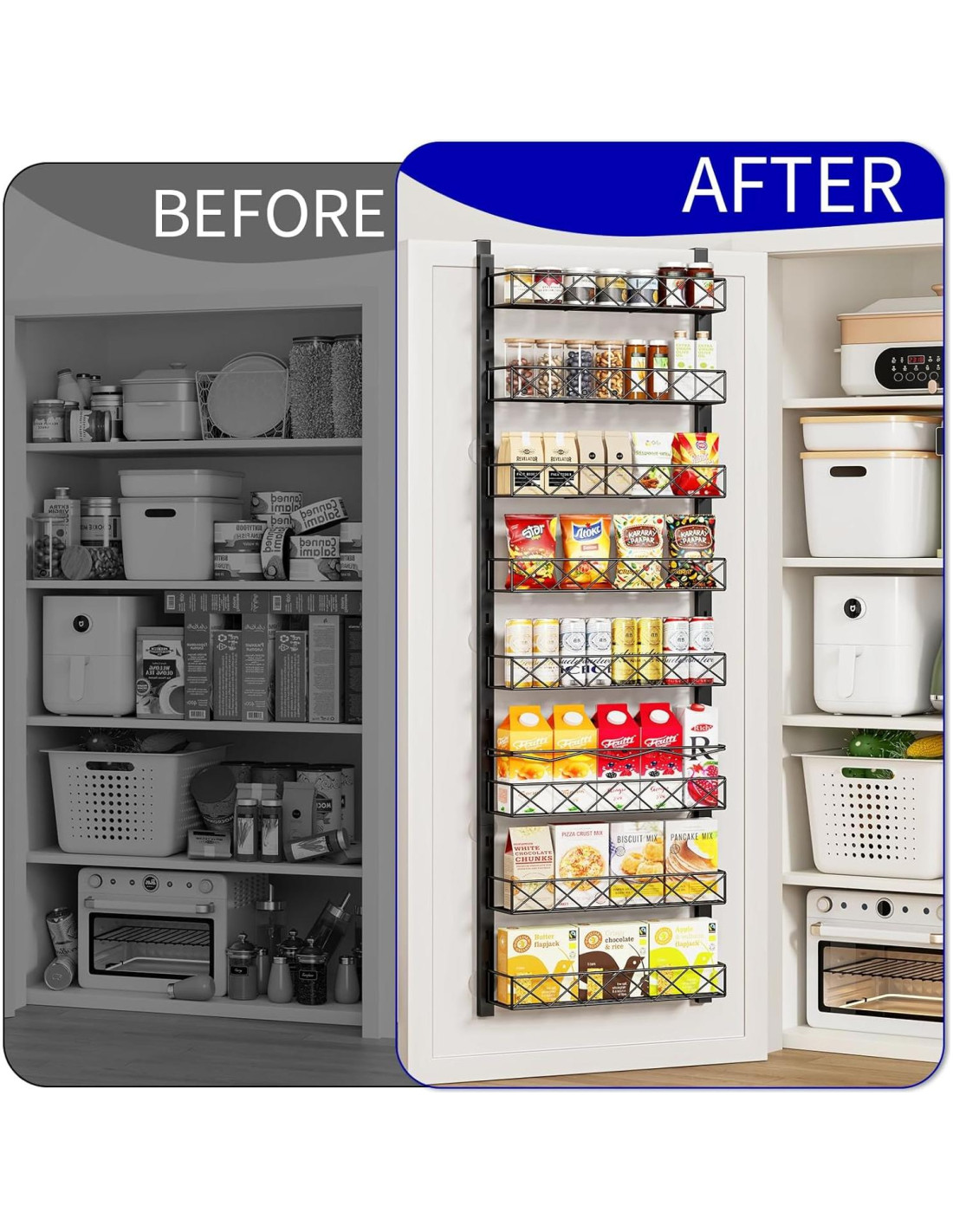 - MULTIUSO Proporciona espacio de almacenamiento adicional para cocina, despensa, baño, dormitorio o lavandería. Ya sean botellas de especias, bocadillos, bebidas, suministros de limpieza, cosméticos, todos pueden almacenarse ordenadamente.