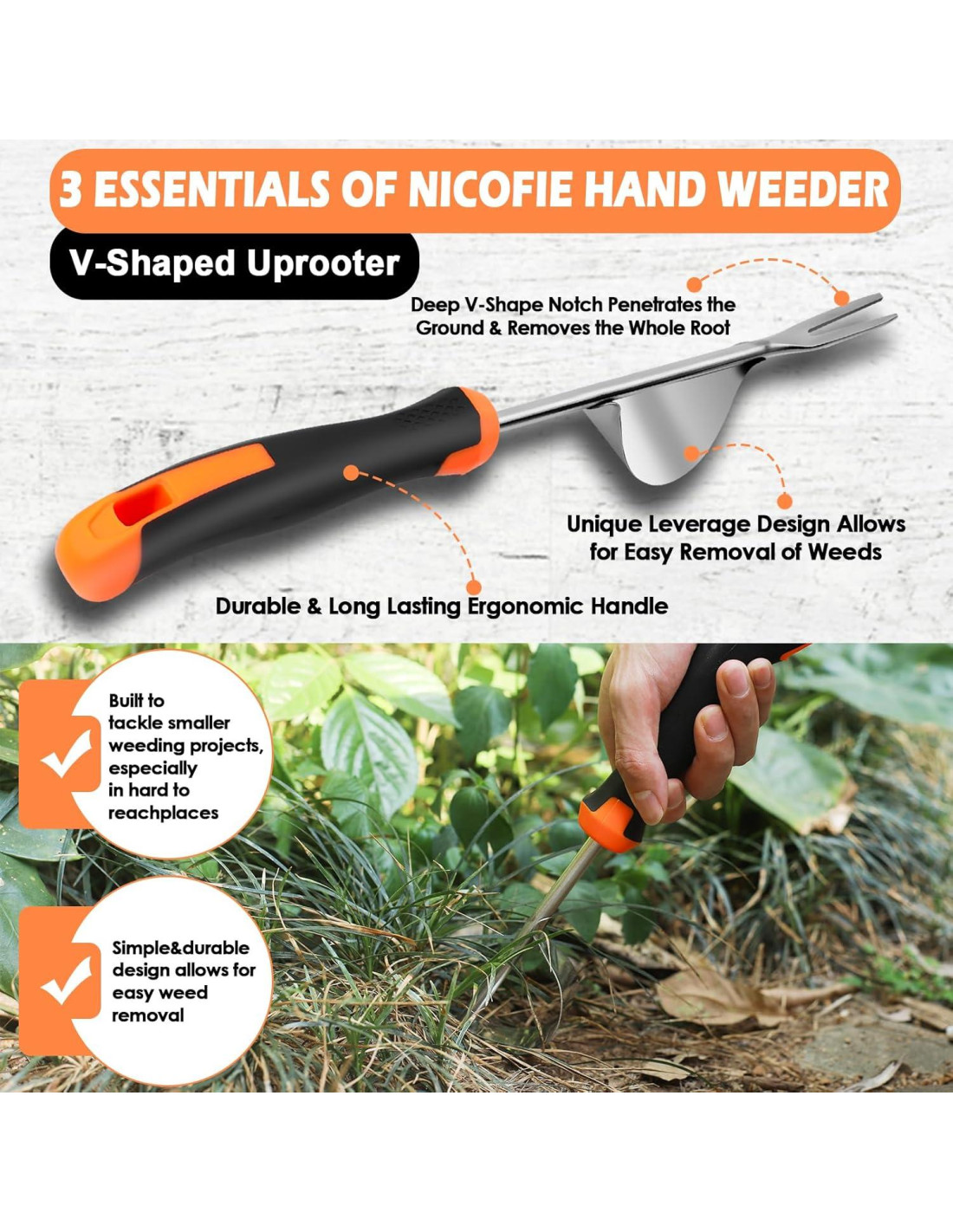 - Construido para durar: Nuestra herramienta de jardín para desmalezar está construida para durar, hecha de acero inoxidable de calidad premium que es resistente, pulido, por lo que puedes contar con que esta herramienta de jardinería se mantendrá en excelente estado durante años.