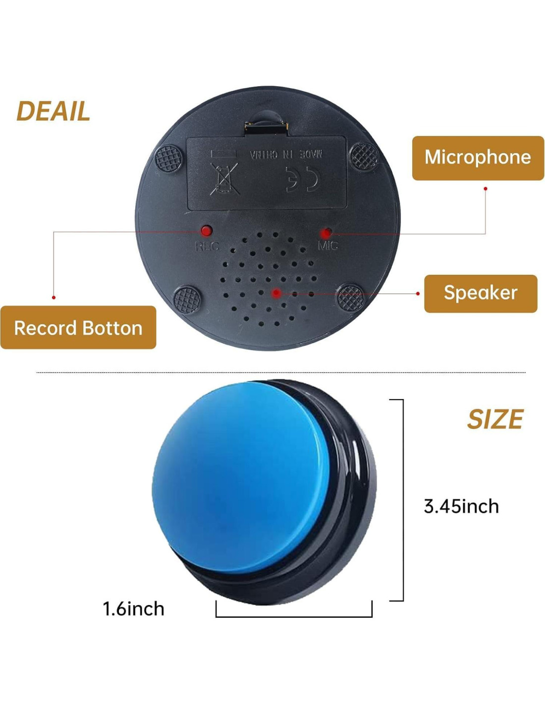 - Grabación Clara de 30 Segundos El botón de grabación te permite grabar hasta 30 segundos de sonido claro. Puedes grabar otros sonidos o efectos de sonido. El sonido es claro. Al mismo tiempo, puedes repetir los diferentes sonidos grabados. Y es muy portátil con su pequeño tamaño. Perfecto para que las familias se reúnan y jueguen cuando salen de picnic y excursiones.