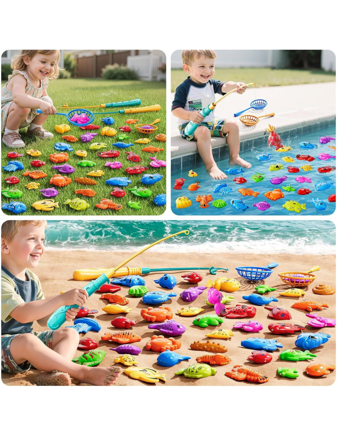 - Juguetes de Interior y Exterior: Doble función como juguetes de agua. Úsalo como juguetes de baño para niños de 4-8 años en la bañera o como juguetes para niños pequeños al aire libre alrededor de las piscinas. Este juguete de pesca para baño se convierte sin problemas, ofreciendo juegos al aire libre divertidos para niños en cualquier momento