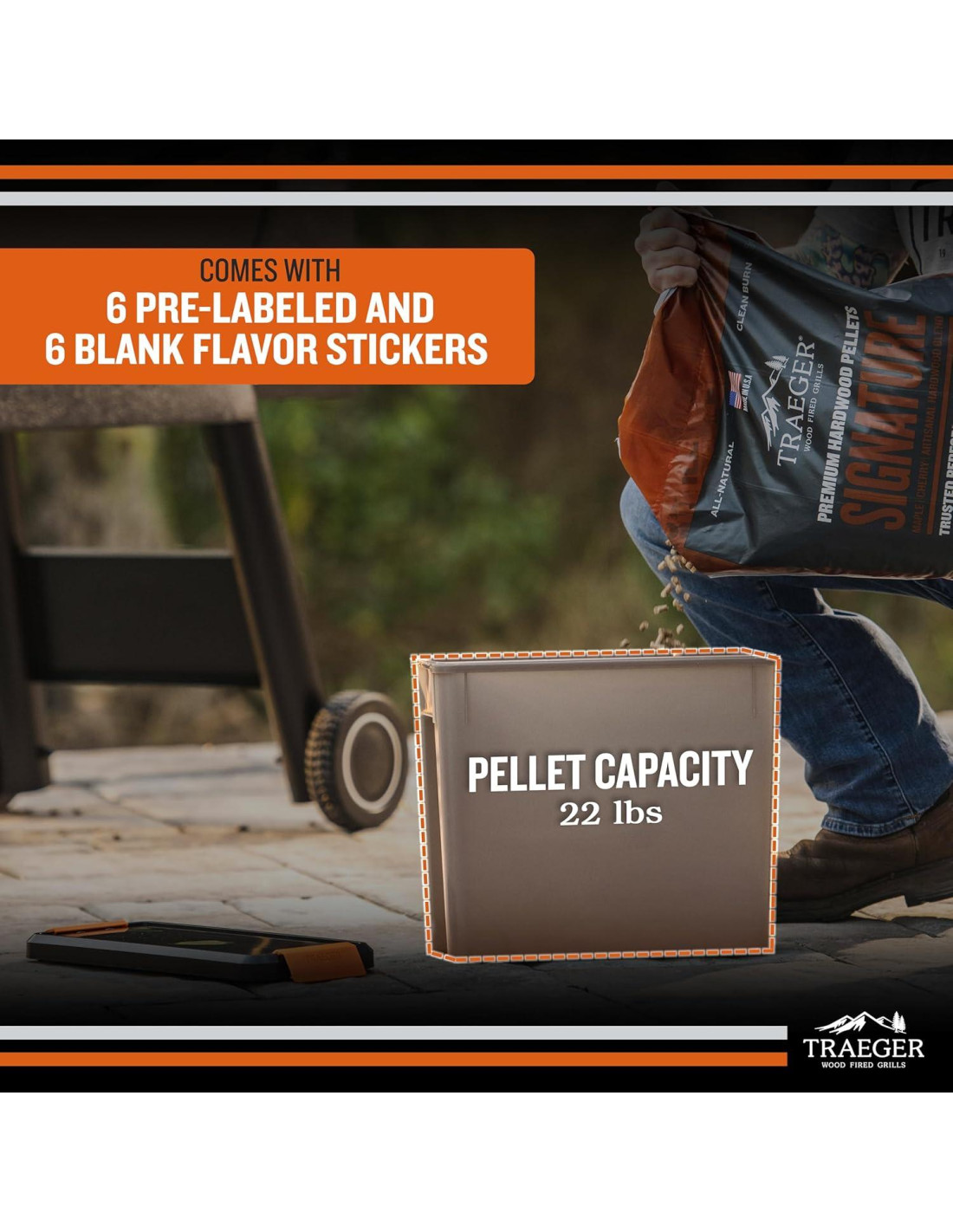 - Incluye Etiquetas de Sabor para una Fácil Organización - Viene con 6 etiquetas de sabor preetiquetadas y 6 etiquetas en blanco, lo que te permite identificar fácilmente diferentes sabores de pellets. Este bin de pellets Traeger es imprescindible para mantener tu área de parrilla organizada.
