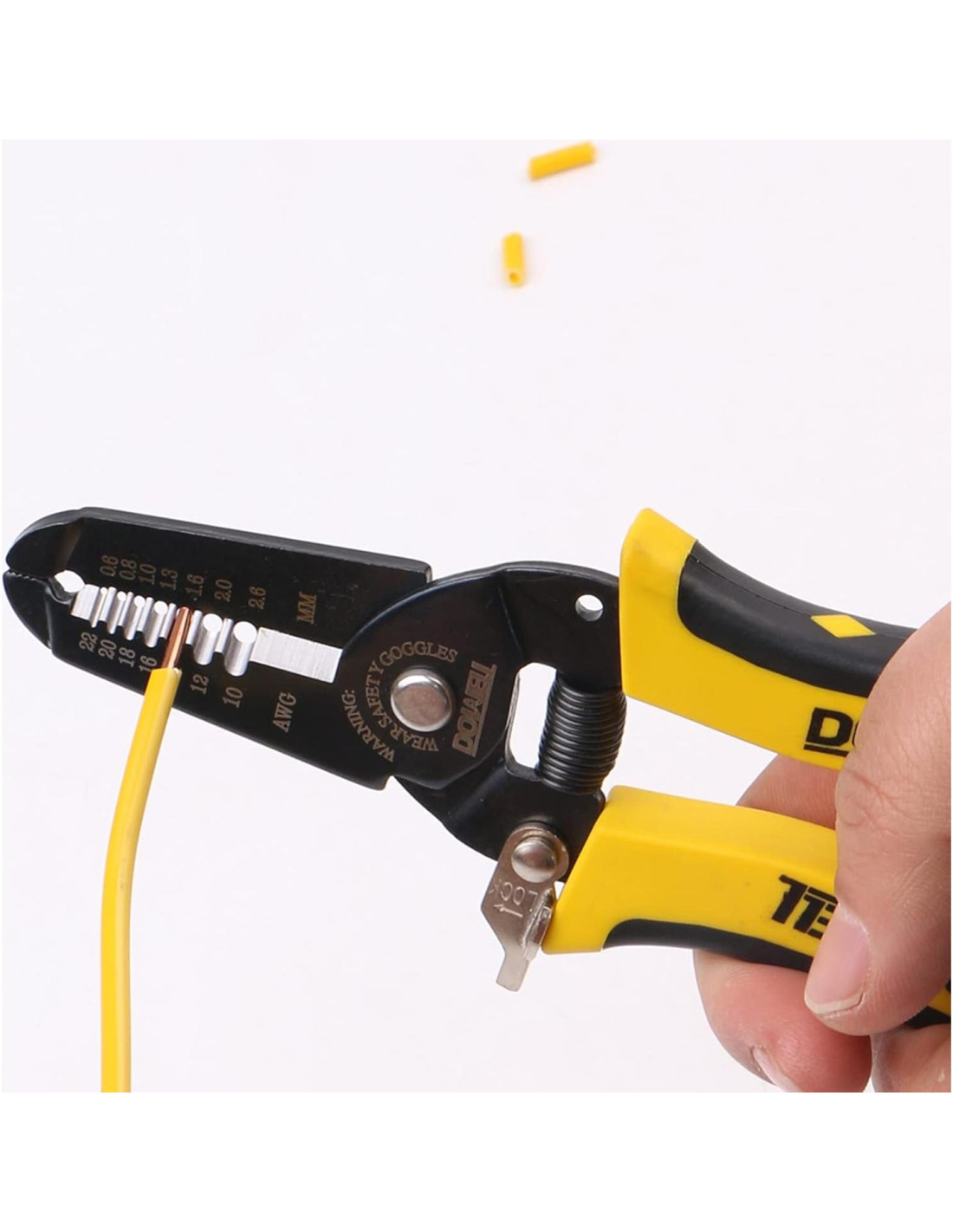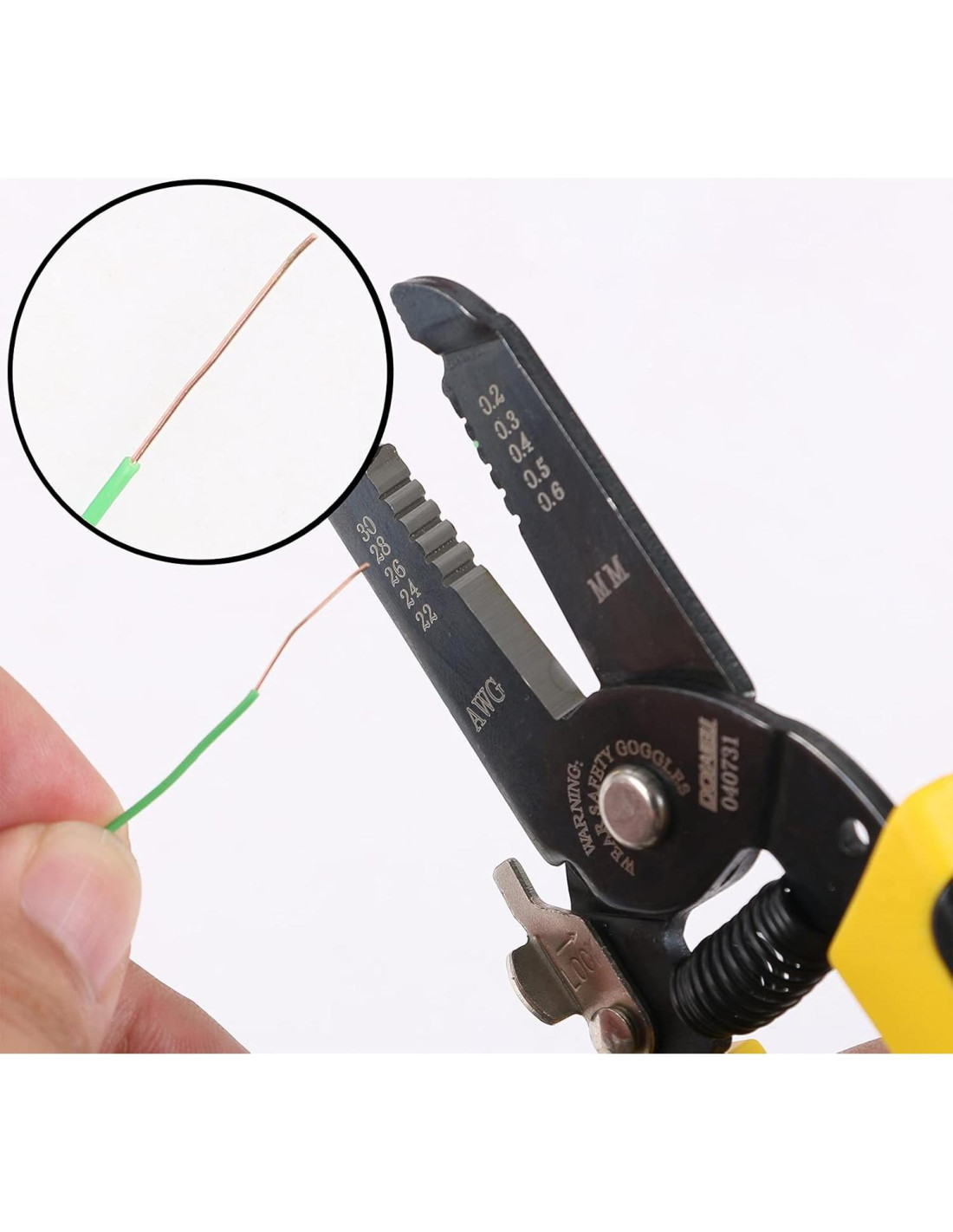 Desforrando cables sólidos y trenzados de 10-22 AWG limpiamente, perfecto para cables de cobre y aluminio. No dañará el núcleo del cable. Cortador de cables incorporado. Resortes de alta calidad para un uso fácil, ahorra esfuerzo. Se puede usar en diferentes lugares. Conveniente y rápido para tu trabajo.