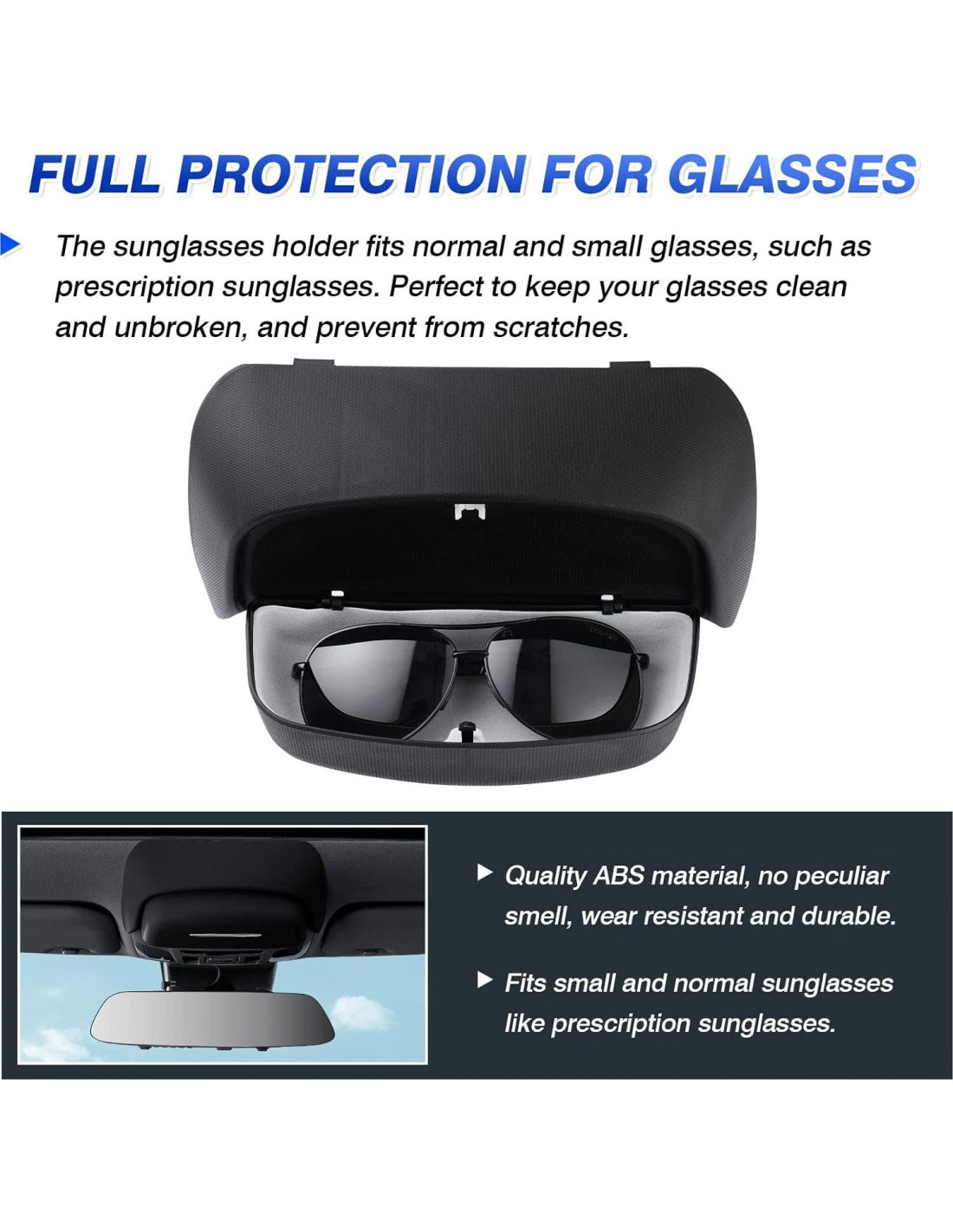 - Alta Calidad y Durabilidad. Este soporte de gafas para Corolla está hecho de material ABS de alta calidad, inodoro, seguro y duradero, y no causará ningún daño a sus gafas.