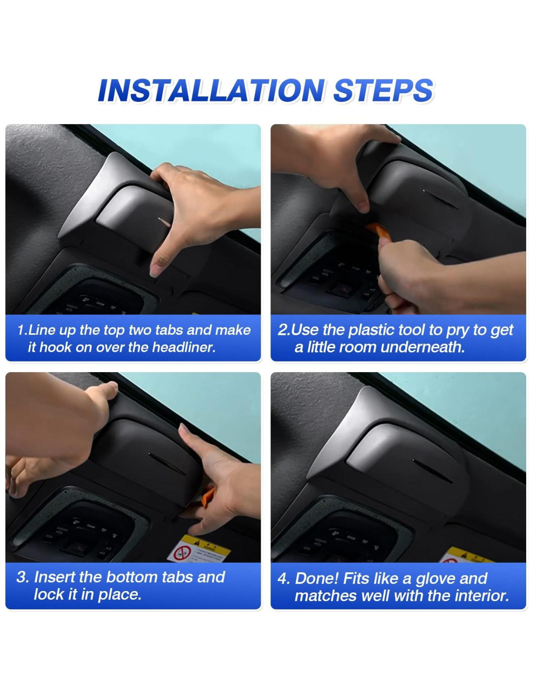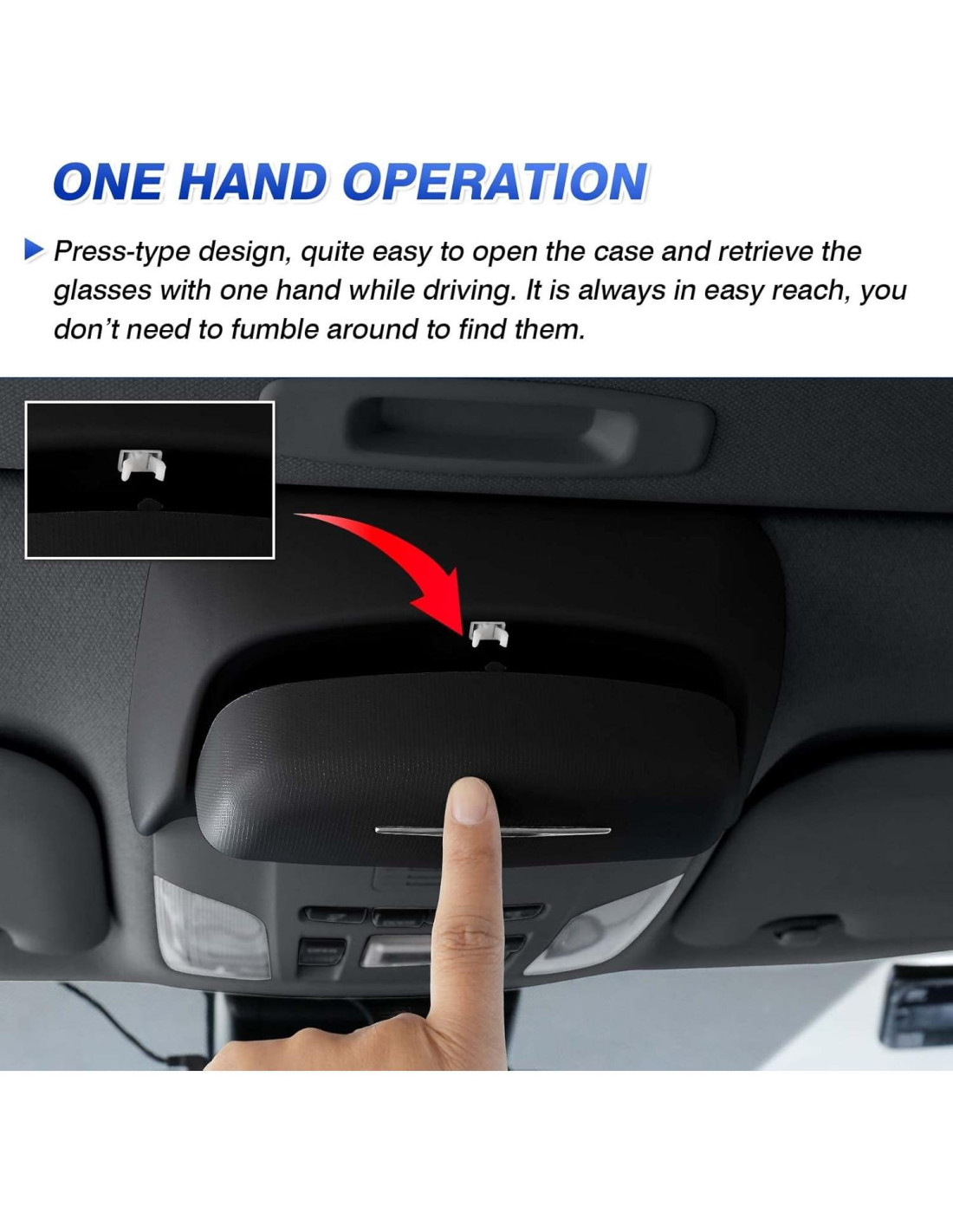 - Fácil de Instalar. Diseño de hebilla, fácil de colocar y fijar la caja de almacenamiento de gafas en el techo solar. Asegurado de manera ajustada y firme, no es fácil que se caiga, sin ruidos ni vibraciones incluso cuando conduce por un camino accidentado.