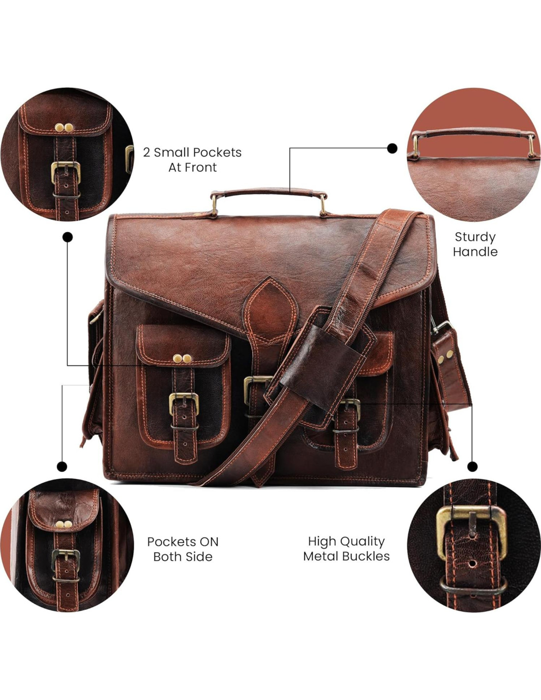 - ARTESANÍA PREMIUM: - Hecho de cuero vintage marrón de alta calidad con un forro de lona duradera, esta bolsa de mensajero está construida para durar. El diseño atemporal y la artesanía superior la convierten en un compañero confiable durante años.