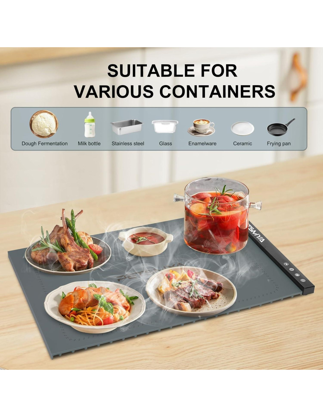 - Calentamiento Rápido de 10 Segundos para Calentamiento Rápido y Eficiente Experimenta un calentamiento rápido con nuestra bandeja calentadora eléctrica, que se calienta en solo 10 segundos, manteniendo tu comida a la temperatura ideal. La alfombrilla calentadora de comida previene que los alimentos se enfríen y es perfecta para mantener los platos calientes en buffets, fiestas o reuniones familiares.