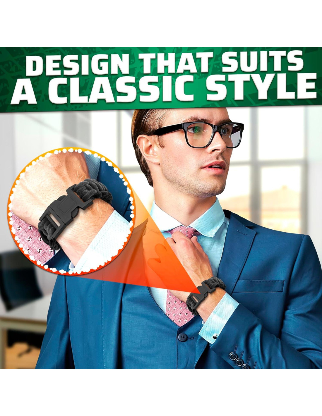 - Trenzado Negro Elegante: La trenza mate neutra de la pulsera de policía para hombres complementa el equipo de senderismo o la vestimenta de oficina, por lo que estas pulseras de paracord para hombres también sirven como un discreto accesorio diario y línea de respaldo confiable