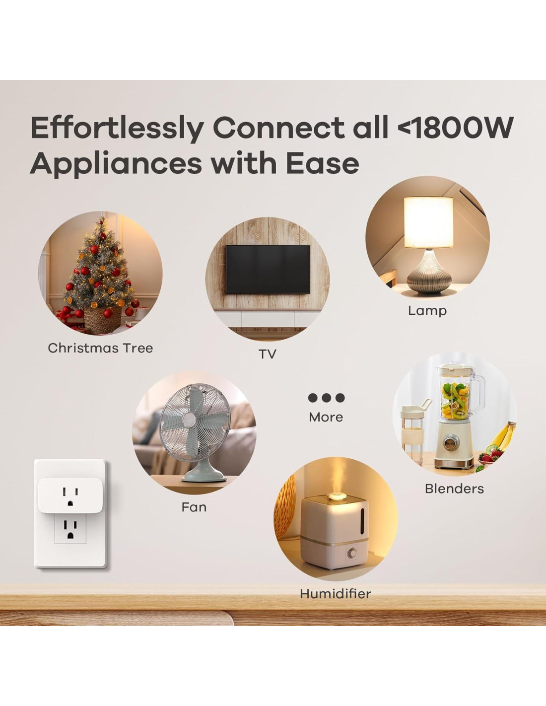 - [Programación Flexible y Temporizador] Reduce el consumo de energía sin esfuerzo con el apagado automático del dispositivo después de un tiempo establecido. Por ejemplo, Árbol de Navidad, TV, Lámpara, Ventilador, Humidificador, Licuadoras, Bombillas