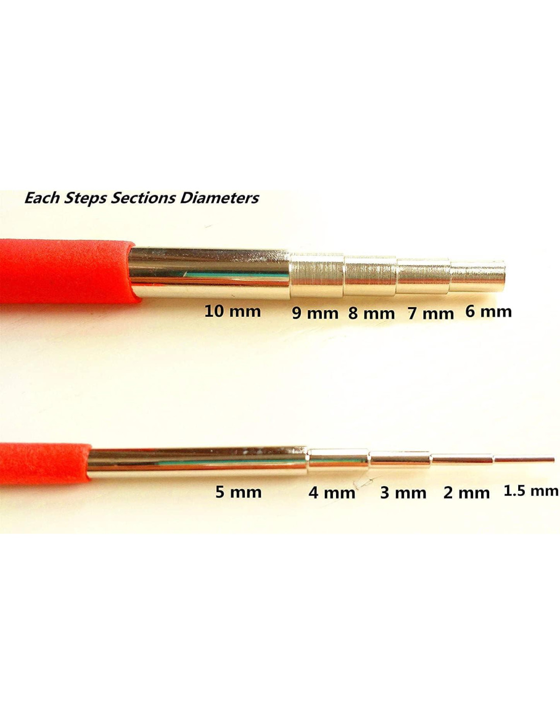 - Fácil de usar, herramienta de joyería económica y práctica, crea bucles redondos en 10 tamaños diferentes, crea bucles uniformes y consistentes en tu trabajo con alambre en formas. Cada mandril tiene 5 pasos, 10 tamaños en total. Adecuado para bucles de 1.5mm/2mm/3mm/4mm/5mm/6mm/7mm/8mm/9mm/10mm.