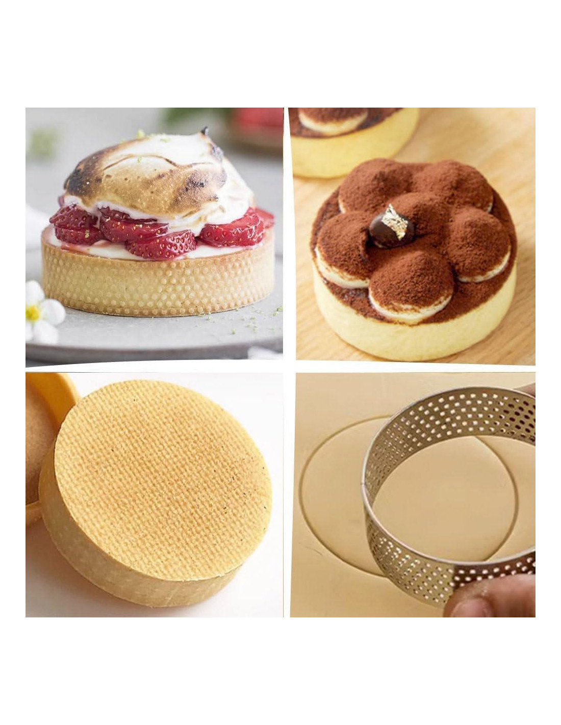- DISEÑO DE AGUJEROS DE VENTILACIÓN: Los agujeros de ventilación de los anillos de tarta perforados están dispuestos en orden y todos del mismo tamaño, buena permeabilidad al aire, hacen que la masa se vea genial y la tarta destaque. Bordes suaves en la parte superior e inferior no lastimarán nuestras manos ni sartenes. Juntas de soldadura fuertes y perfectas para un uso a largo plazo.