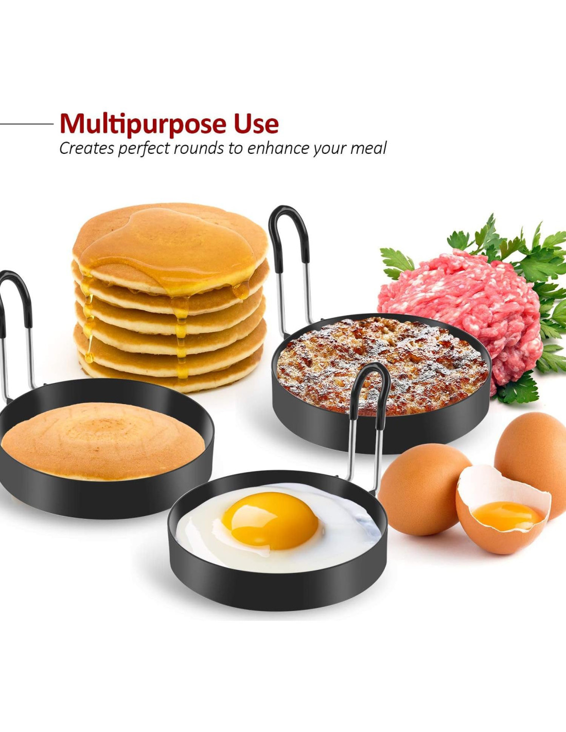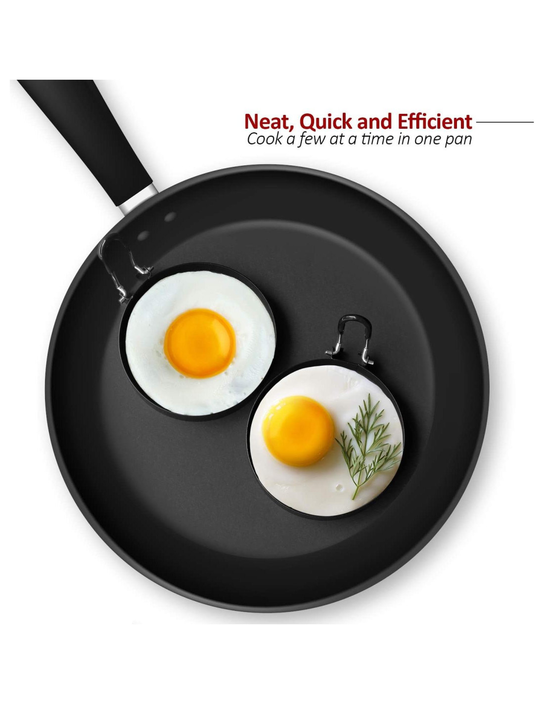- DESAYUNO RÁPIDO Y FÁCIL: ¿Deseando un delicioso McMuffin de huevo pero no quieres hacer el viaje a McDonald's? Es fácil rociar tus anillos con Pam o mantequilla y colocarlos en la sartén o en la plancha para un precalentamiento rápido. Deja caer el huevo en el anillo, unta un muffin inglés, toma un café y sal corriendo por la puerta con un delicioso y saludable sándwich de huevo para el desayuno!