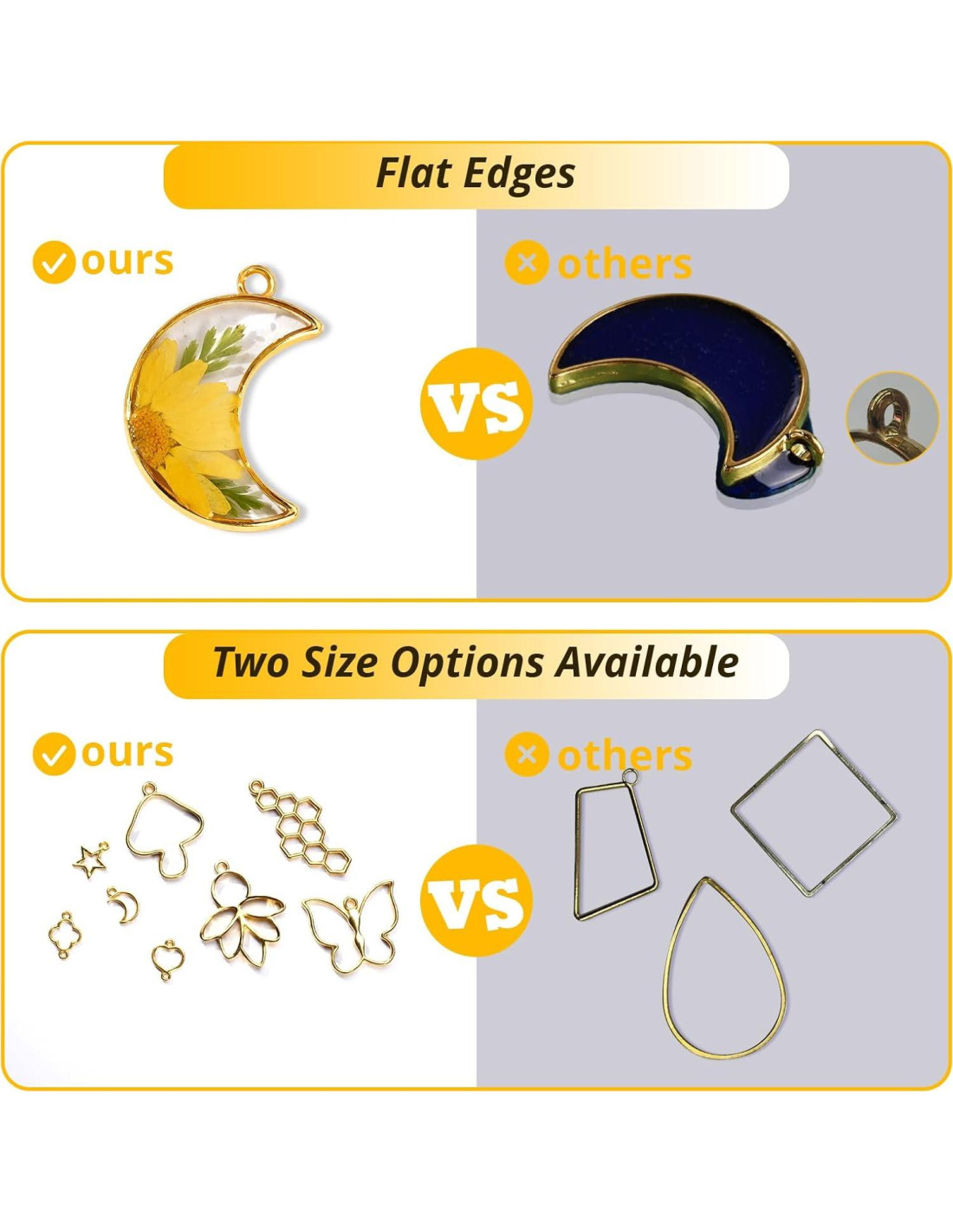 - Material duradero y no desvanecible: Estas aberturas abiertas para hacer joyería de resina están hechas de aleación de zinc de alta calidad, ofreciendo excelente durabilidad y resistencia a la decoloración o oxidación para un uso prolongado. Con un diseño ligero y un grosor moderado, los moldes de resina para joyería son cómodos de usar y perfectos para crear varios estilos de joyería de resina.