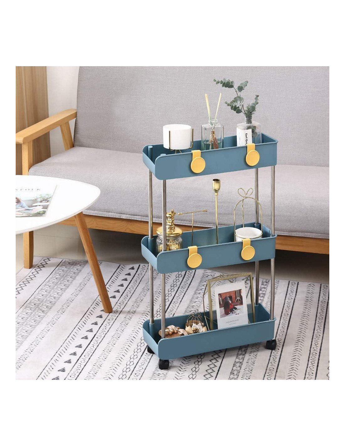 - [Carro de Almacenamiento Móvil] 4 ruedas duraderas de fácil deslizamiento hacen que el carrito de almacenamiento sea suave y conveniente de sacar y meter en espacios estrechos como salas de correo, cubículos, aulas, dormitorios, bibliotecas.
