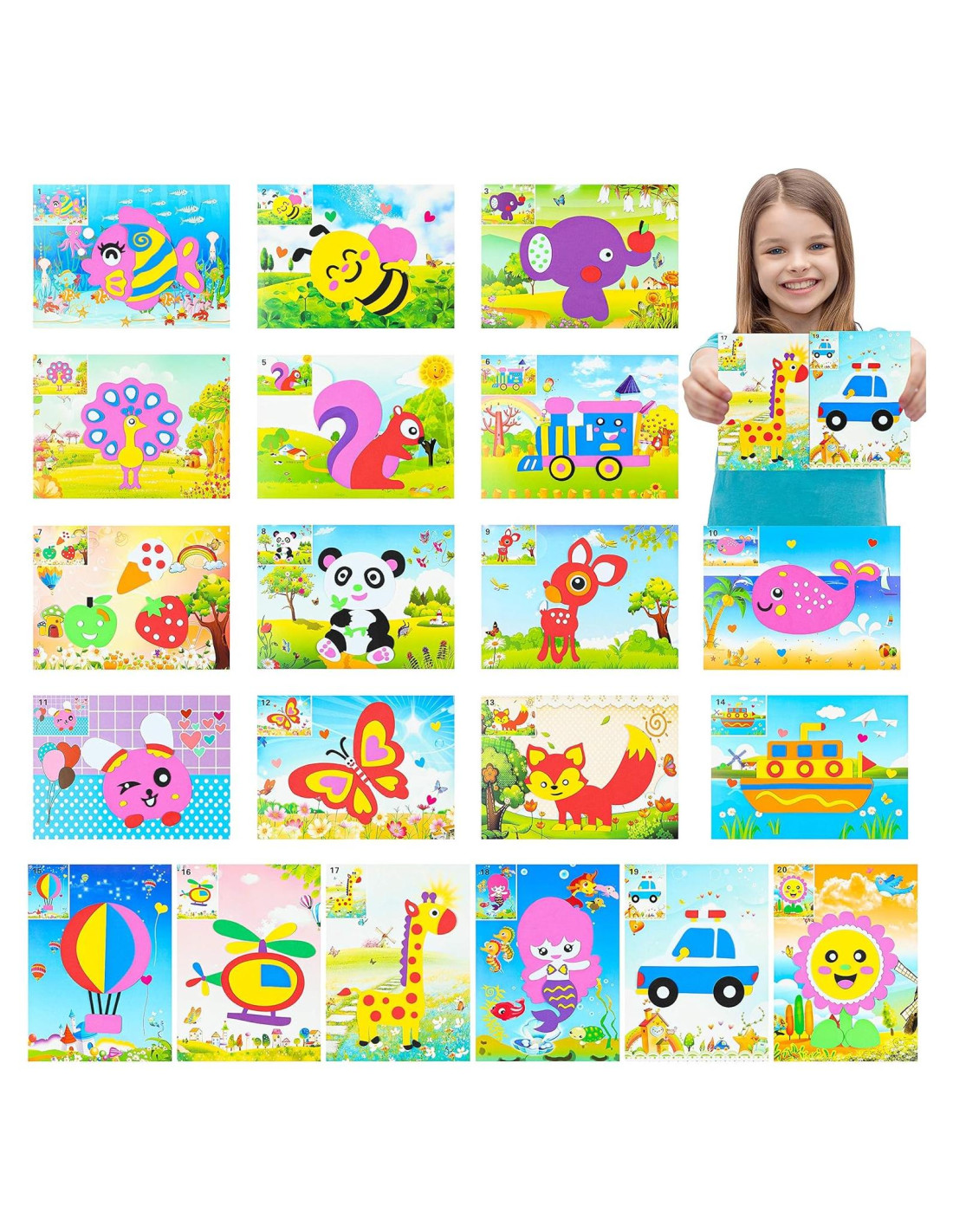 - [Divertido Set de Manualidades de Mosaico] Total de 20 paquetes de sets de arte con pegatinas de mosaico, es bueno para niños en edad preescolar, bebés de 3 años en adelante, es un juguete educativo increíble, juguetes de aprendizaje DIY para preescolar, las pegatinas están hechas de material de espuma Eva suave, autoadhesivas, no se necesita pegamento, fáciles de despegar, duraderas, sin olor y seguras.
