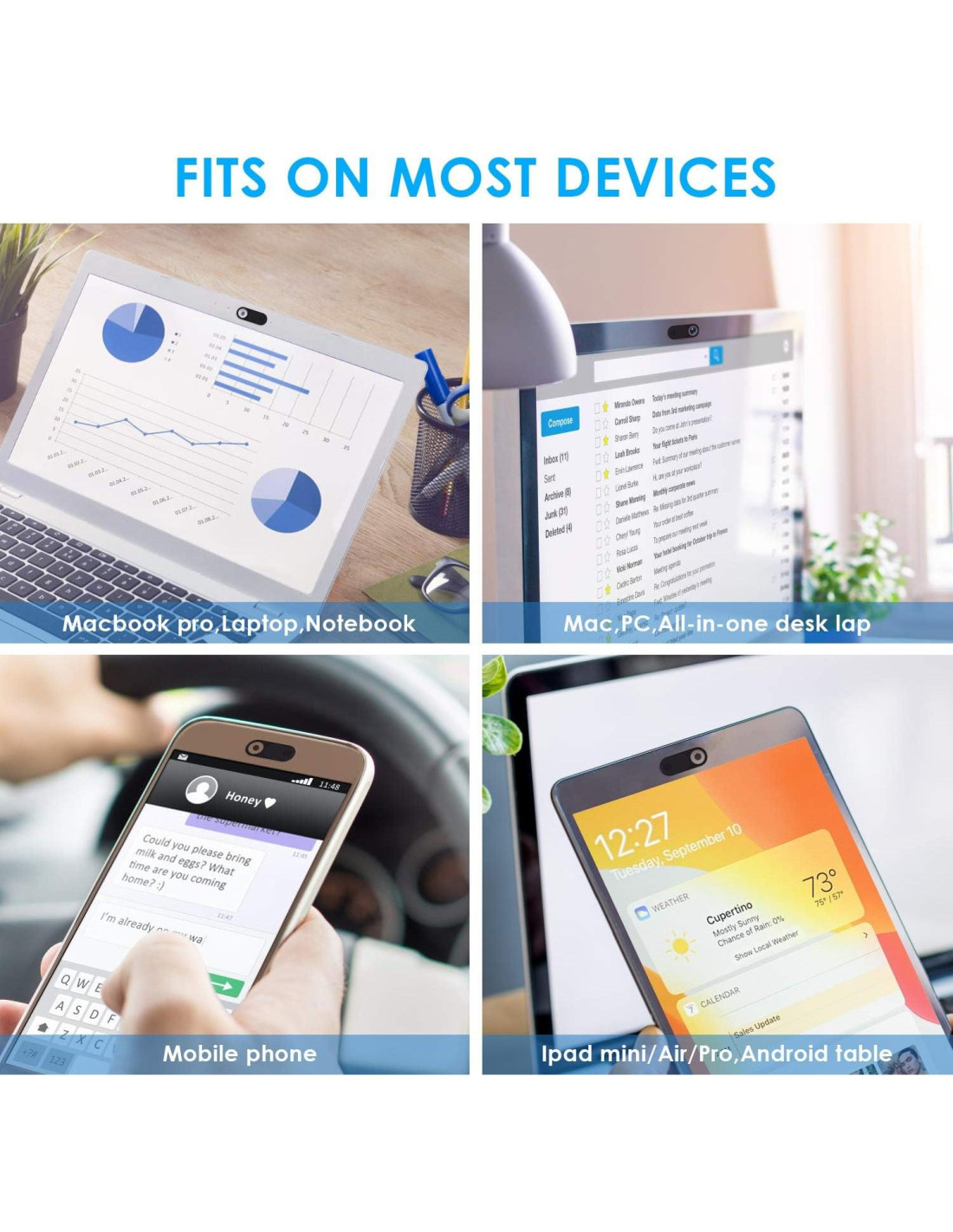 - [Se Ajusta a la Mayoría de los Dispositivos] El bloqueador de cámara para laptop es perfectamente compatible con la mayoría de los modelos de computadoras, tabletas y teléfonos celulares. Como MacBook Pro, MacBook Air, Mac, laptops, Microsoft Surface, iPad, tabletas Android, PC, computadora, escritorio todo en uno, iPhone y otros smartphones Android. La cubierta de cámara de computadora no interfiere con el uso de la webcam o la señal web y no dañará tu dispositivo de ninguna manera.