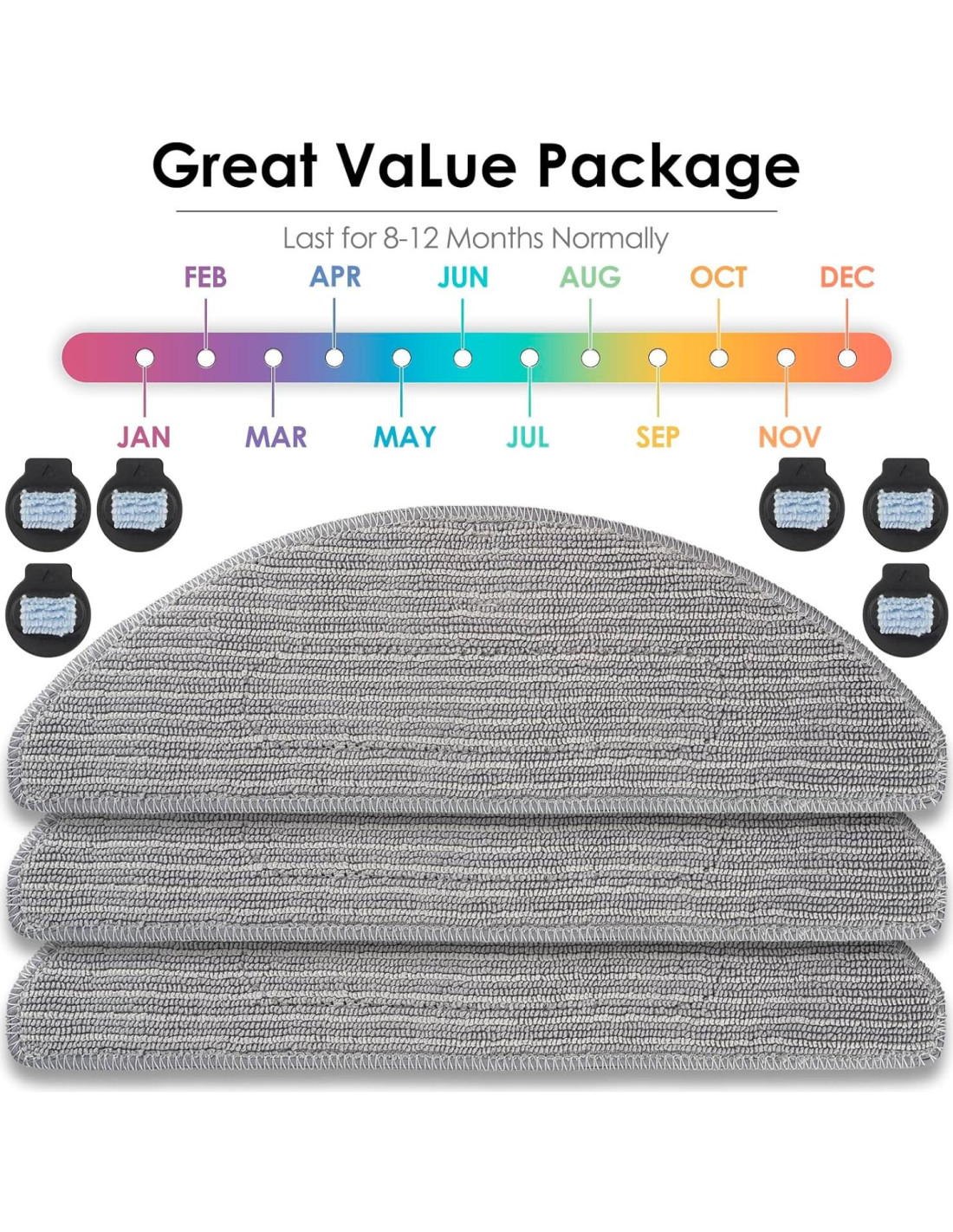- [Paquete de Gran Valor] Este paquete vendrá con 3 paños de mopa y 6 mechas. Es una opción rentable para complementar los paños de mopa para su aspiradora robótica. El método de instalación es el mismo que el de los paños de mopa originales, fácil de instalar y fácil de usar.