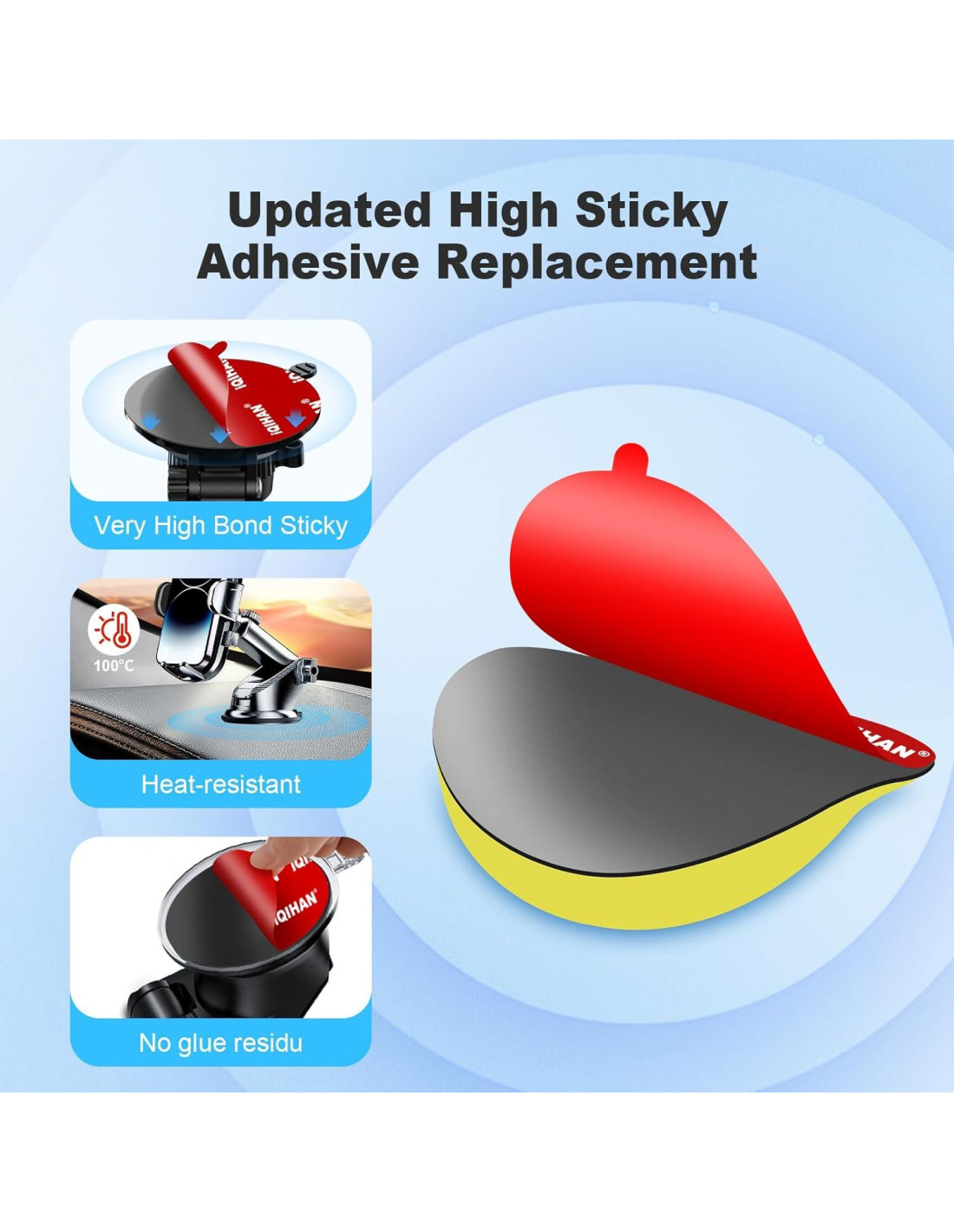 - [Adhesivo para Soporte de Teléfono en el Tablero] ¿Buscas una solución confiable para fijar tu soporte de auto o sostén de teléfono? Nuestras almohadillas adhesivas redondas de doble cara de 70 mm (2.76 pulgadas) de alta resistencia están hechas de espuma acrílica de alta calidad, con un adhesivo 40% más fuerte que los adhesivos ordinarios, lo que puede asegurar que tus accesorios estén firmemente fijados en su lugar. Compatible con la mayoría de los soportes de teléfono, soportes de ventosa para tablero y soportes de ventosa para teléfono en parabrisas.